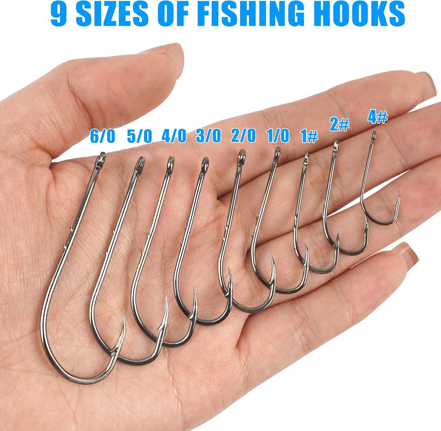 🐟【QUANTITY】50pcs barbed baitholder fishing hooks. Optional sizes: 4#, 2#, 1#,1/0, 2/0, 3/0, 4/0, 5/0, 6/0, used with soft lure or live bait will increase your chances to catch more bigger fishes.! (Note: The hook is very sharp, please be careful with it)