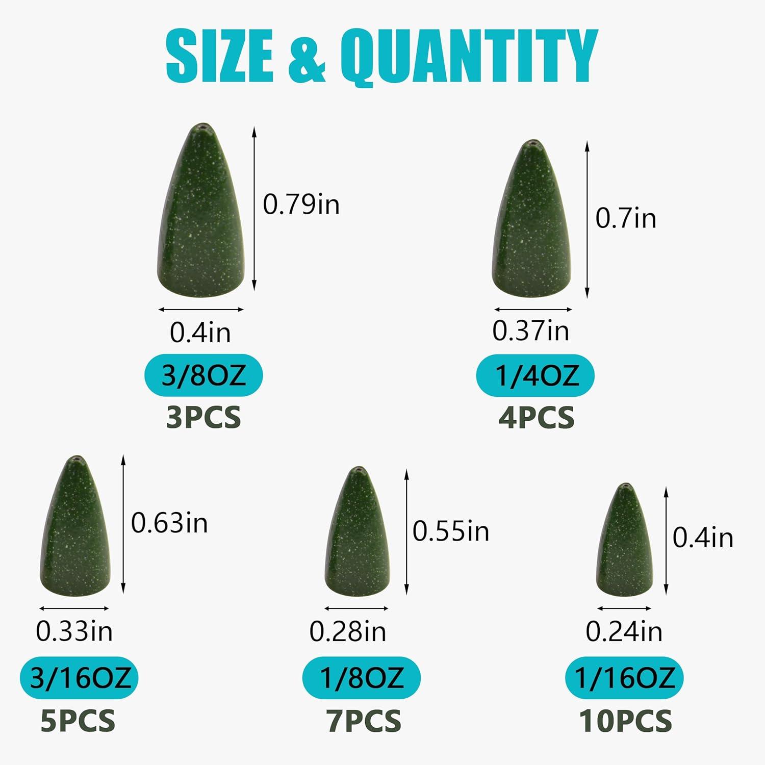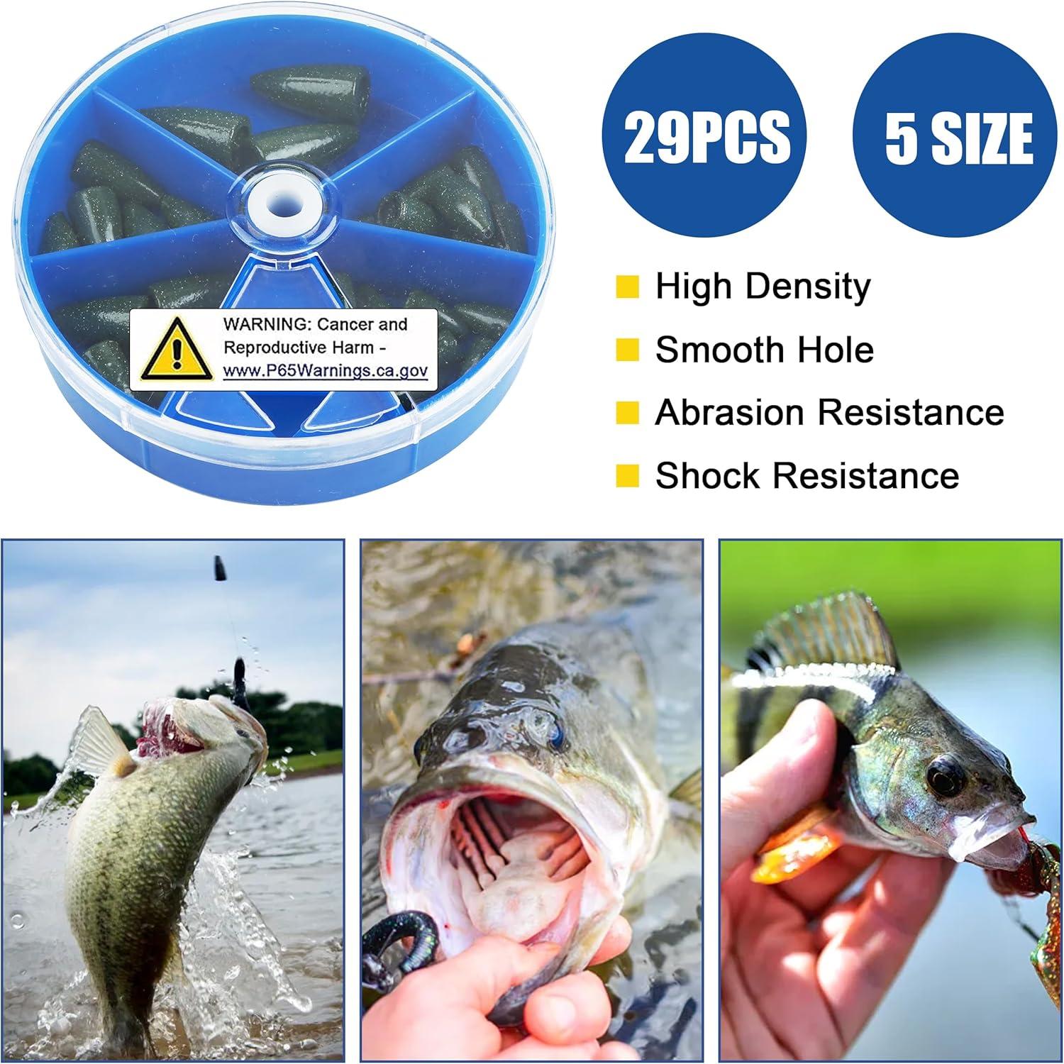 【Premium Quality】Made from high quality materials, the surface of the fishing sinkers is smooth polished with deburred surface, it reduces friction under water, minimizes the effect on your lures swimming action