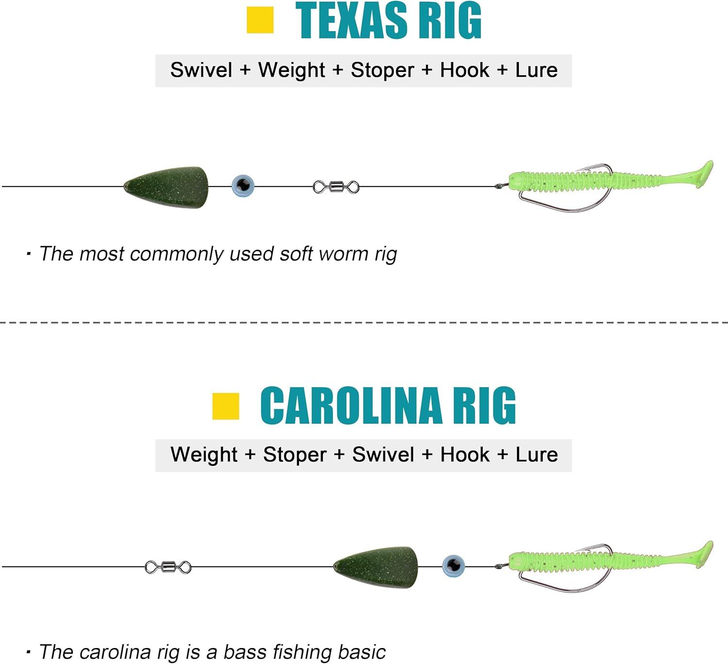 【Widely Used】A must have in bass fishing for making Texas rig, Carolina rig and other rigs with soft lures. Whether you're targeting small mouth bass in shallow water or large mouth bass in deeper lakes, the assorted bullet sinker weights for fishing is a must have!