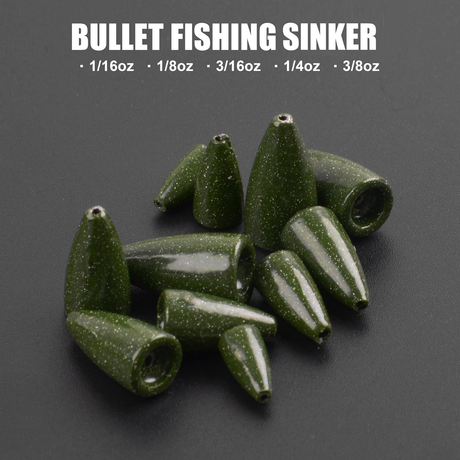 Bullet Sinkers Fishing Weights Kit, 29/83pcs Fishing Sinkers Weights Set Assorted Slip Sinker Worm Weights for Bass Fishing Saltwater Freshwater(29pcs-green Pumpkin)