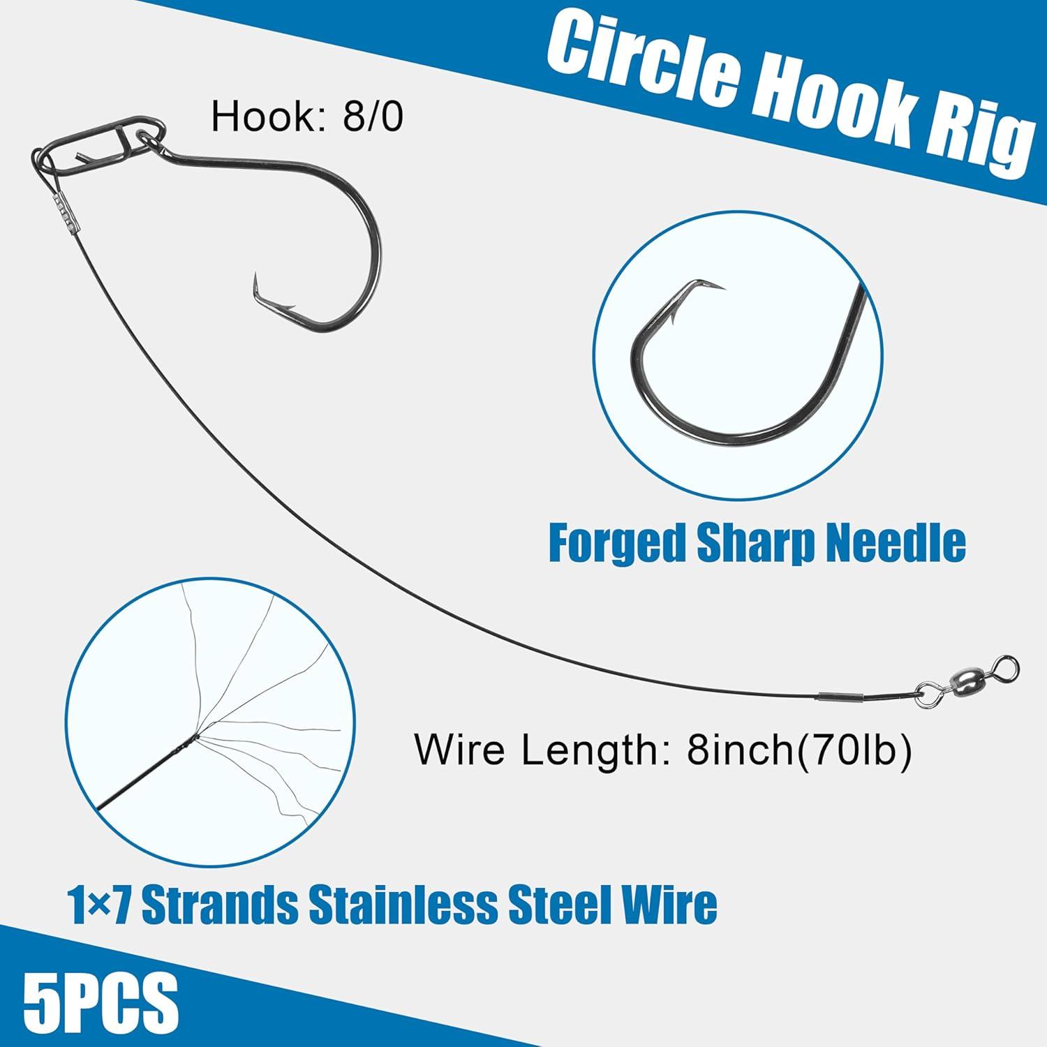 【Pre-rigged Circle Hook Rigs】1×7 strands strong and powerful black nylon steel wire give you enough confidence when you fight with the catfish. Inward bending sharp tip designed for hooking fish in the corner of mouth or lip, reducing gut hooked fishes in catch-and-release fishing