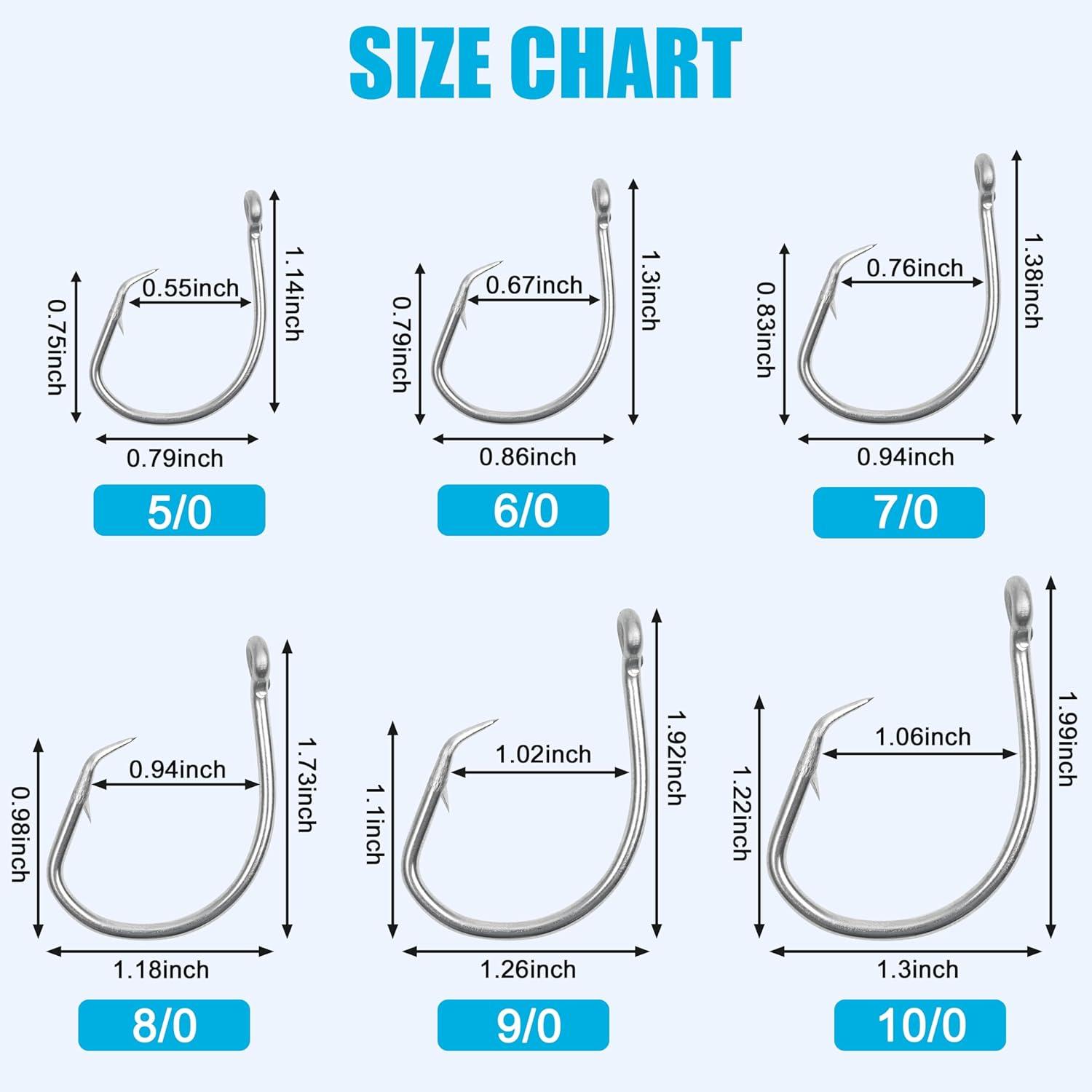 🐟【Quantity & Size】30pcs/45pcs. 6 sizes available: 5/0, 6/0, 7/0, 8/0, 9/0, 10/0, Mixed Kit (10pcs 5/0, 10pcs 6/0, 10pcs 7/0, 5pcs 8/0, 5pcs 9/0, 5pcs 10/0). Great for catching a variety of predator fish, easy to use for anglers of all levels of experience.