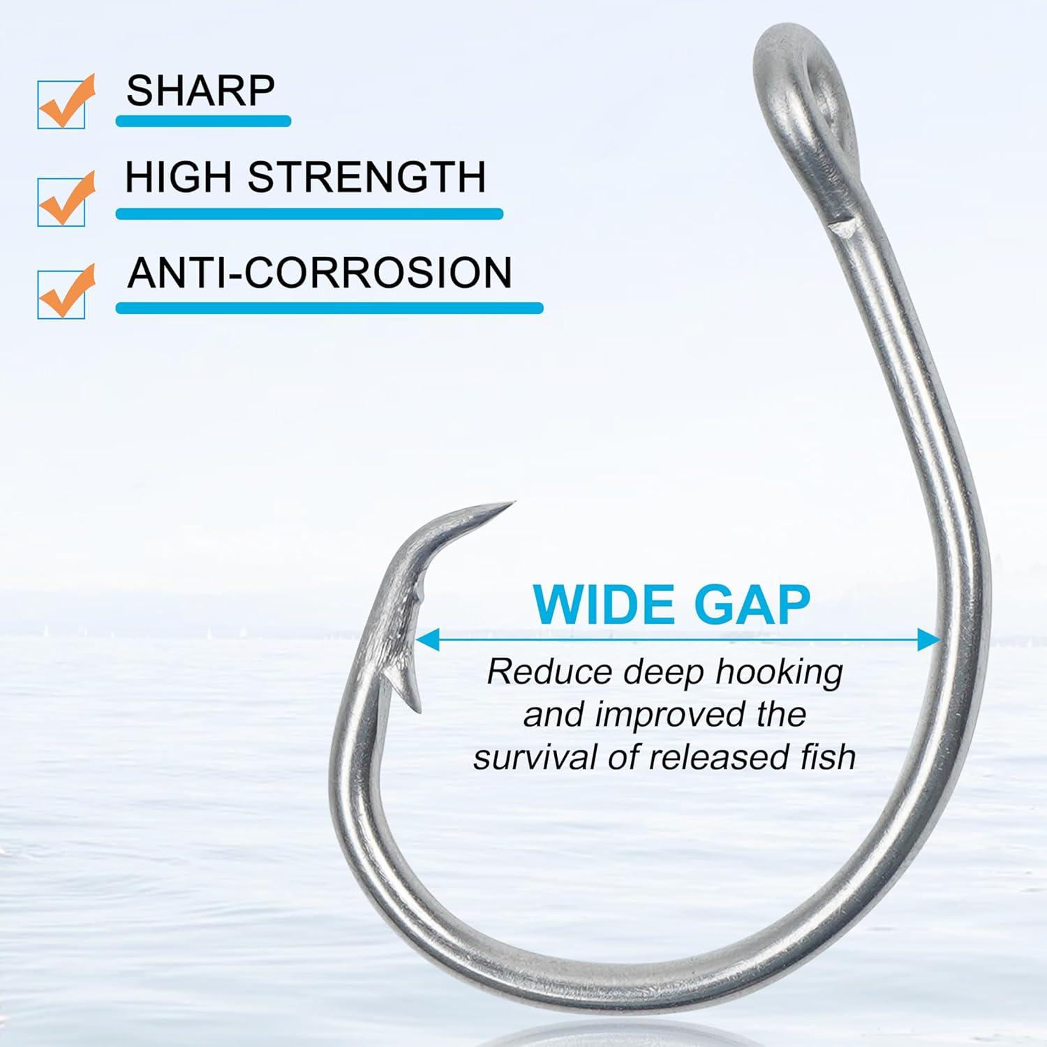 🐟【Wide Application】These stainless steel fishing hooks target tuna, shark, catfish, snapper, tilefish fishing and other large fish. They're used commonly in big game tournaments.
