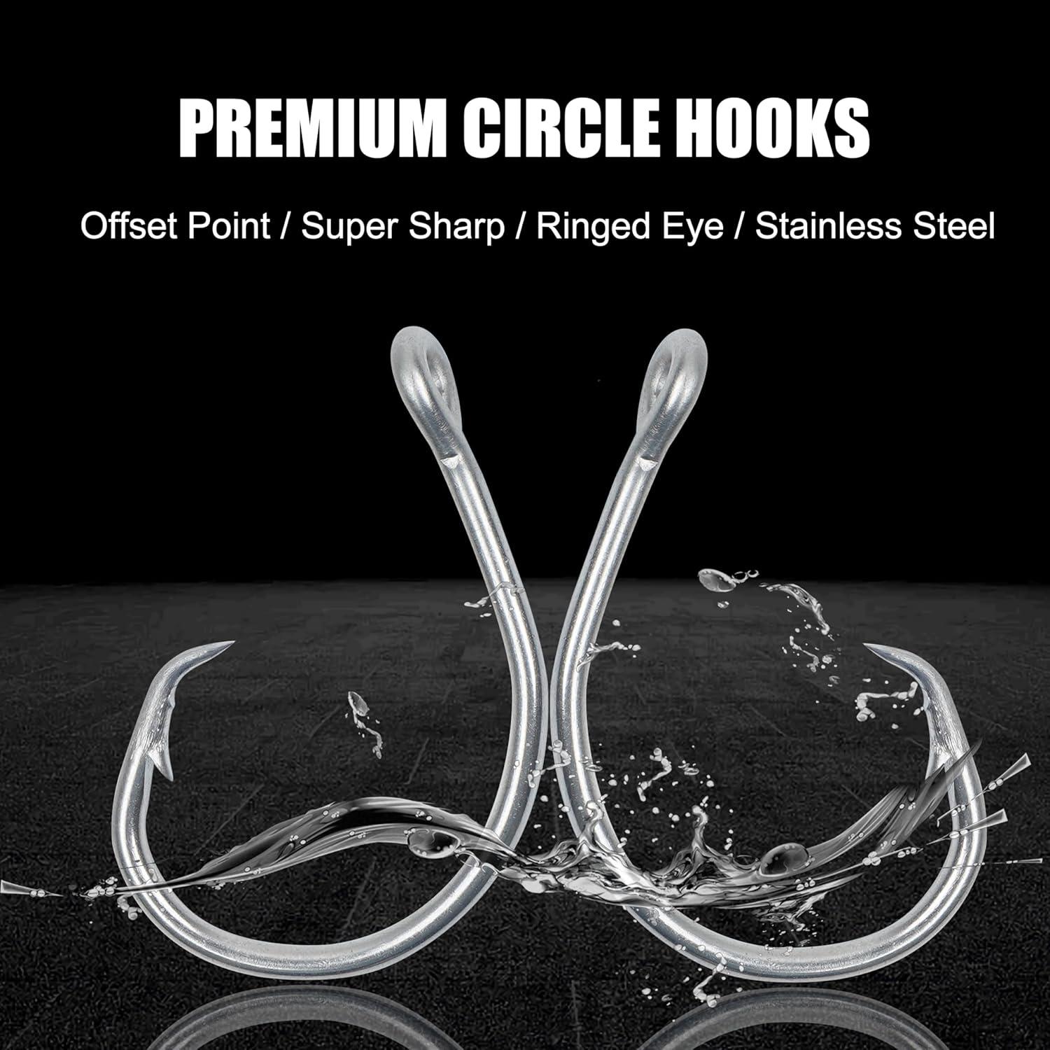 🐟【High Quality】Saltwater fishing circle hooks are made of stainless steel, each fish hook is polished manually to ensure that the hook is sharp. With high strength and corrosion resistance.