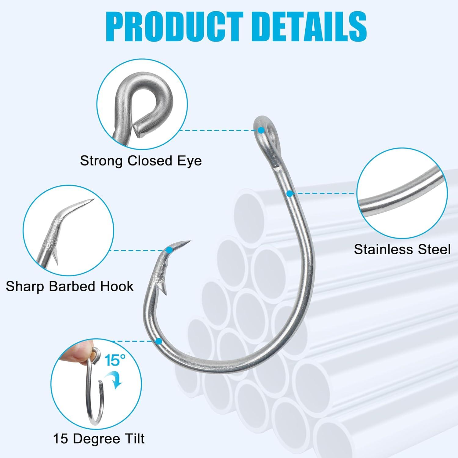 🐟【Wide Application】These stainless steel fishing hooks target tuna, shark, catfish, snapper, tilefish fishing and other large fish. They're used commonly in big game tournaments.