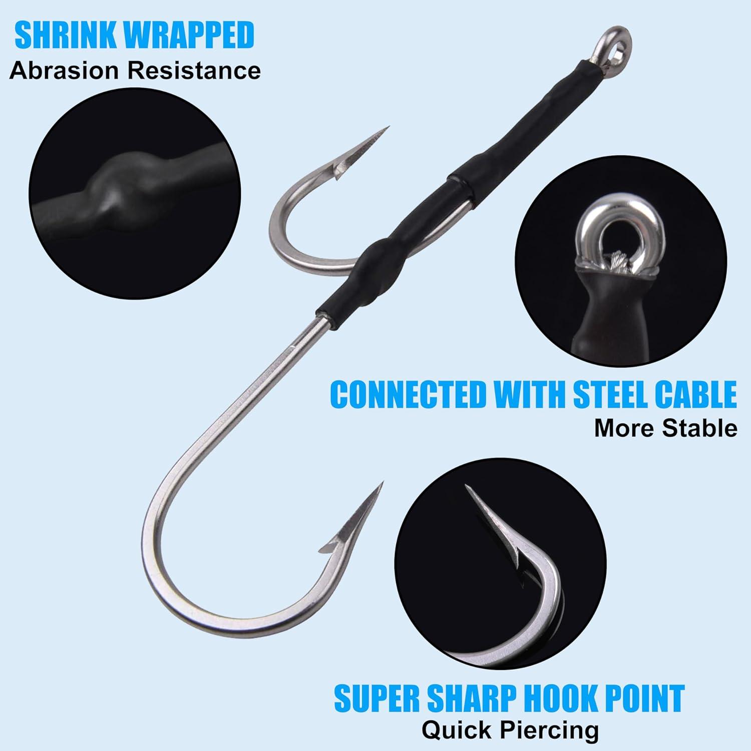 【BIG GAME FISHING HOOK】OROOTL double hook rig saltwater is the perfect option when targeting big game species such as Tuna, Marlin, Wahoo, Sharks, Mahi, Barracuda, etc