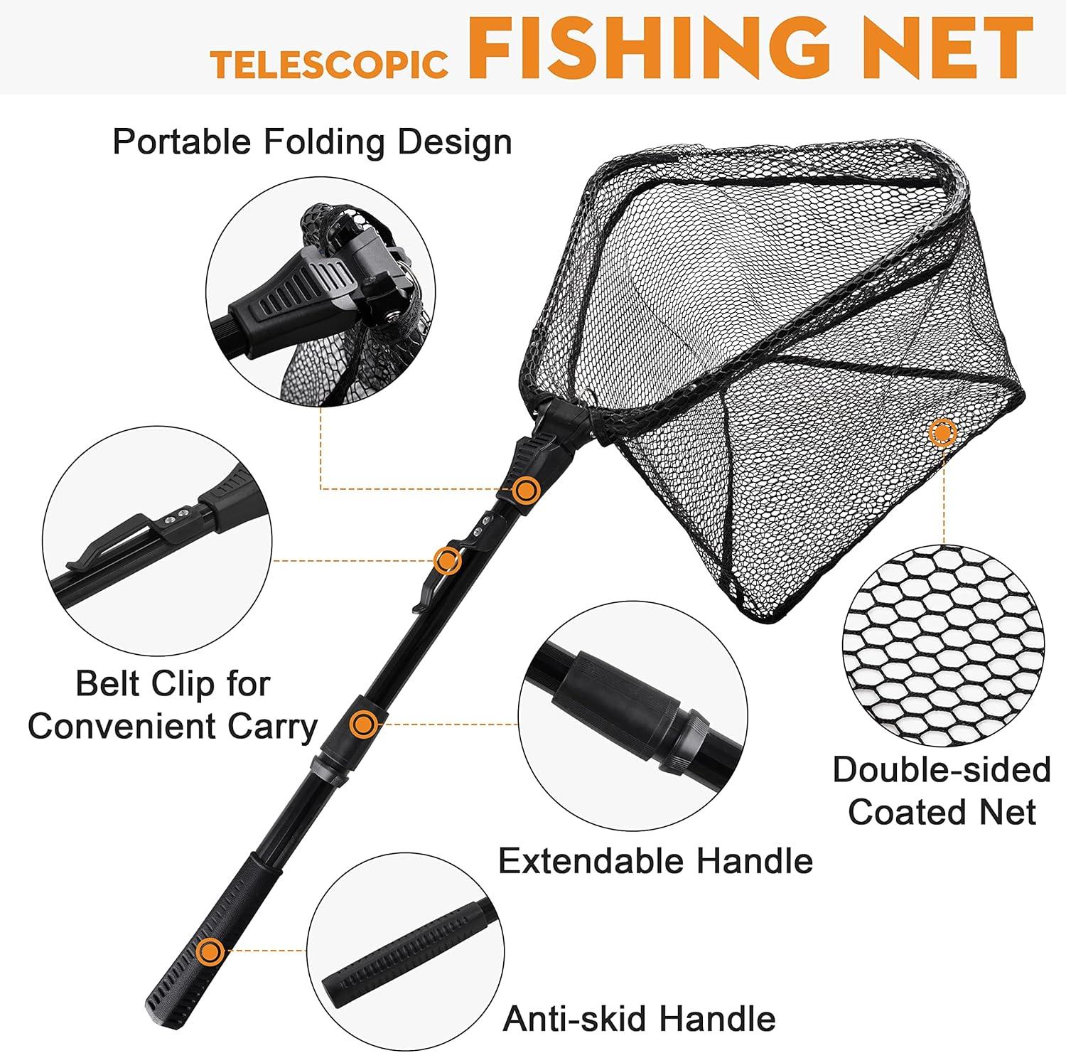 OROOTL Fishing Landing Nets give you professional guides to explore your line of fishing tackle! Provide you durable, high performance, efficient and effective fishing net to help you land big fish from boats. Great for bass, walleye, northern pike, musky, lake trout in freshwater and striped bass, red drum, snook, flounder in saltwater.