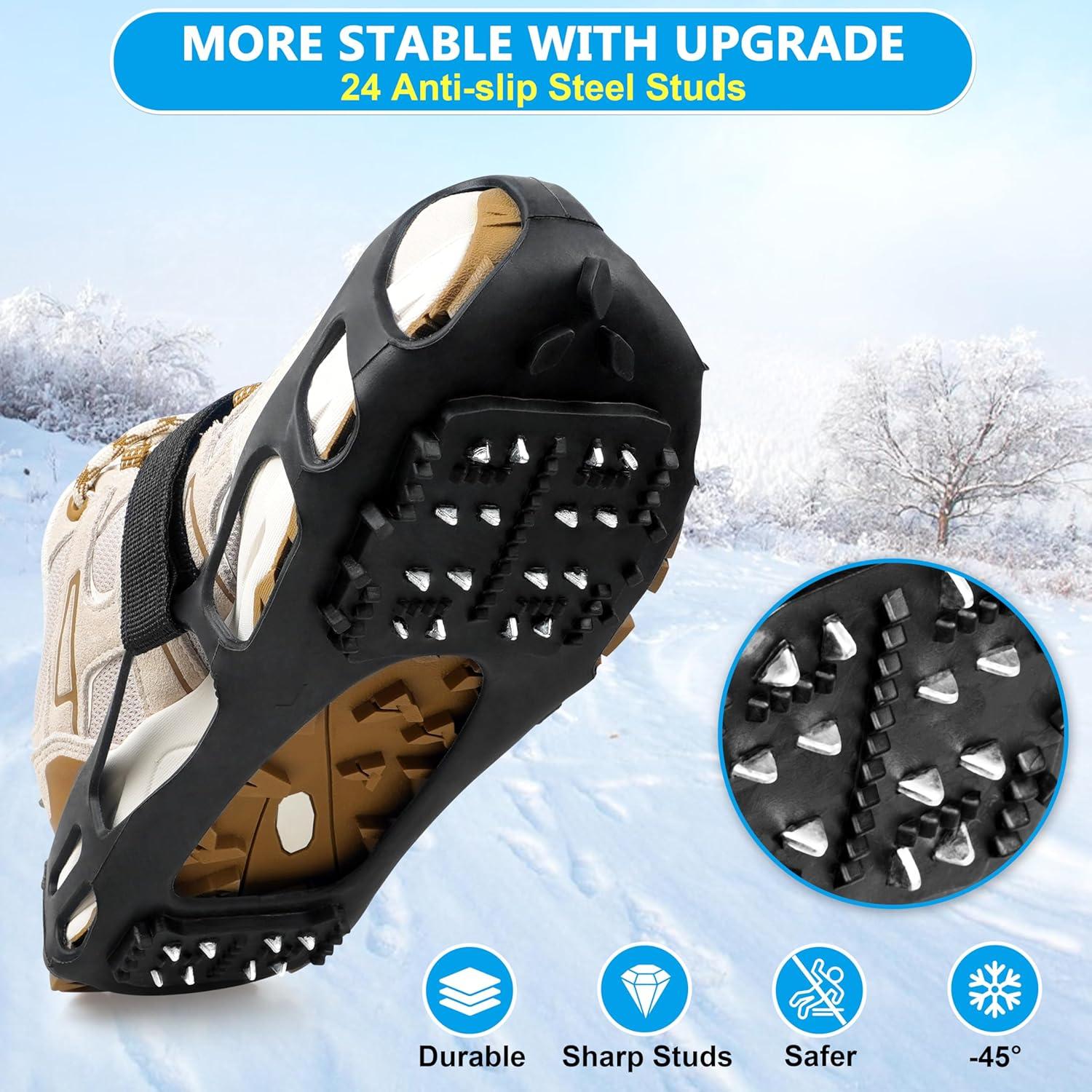 Ice Cleats for Shoes and Boots Walk Traction Crampons Anti Slip 24 Studs Ice Snow Grippers for Women Men Kids Winter Hiking Climbing Fishing Gear(X-Large (10.5-13 men/11.5-14 women))