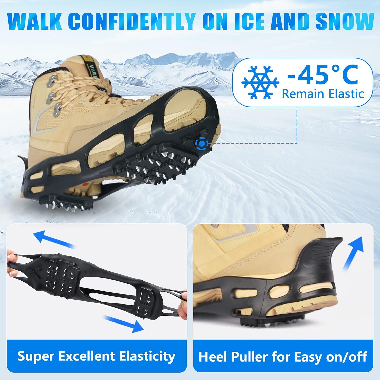 【PERFECT FOR WINTER】Never slip on snow or ice again with our crampons traction cleats ice snow grippers! Perfect for hiking, ice fishing, mountaineering, or walking no matter what winter condition to help prevent slips or fall with these ice cleats.