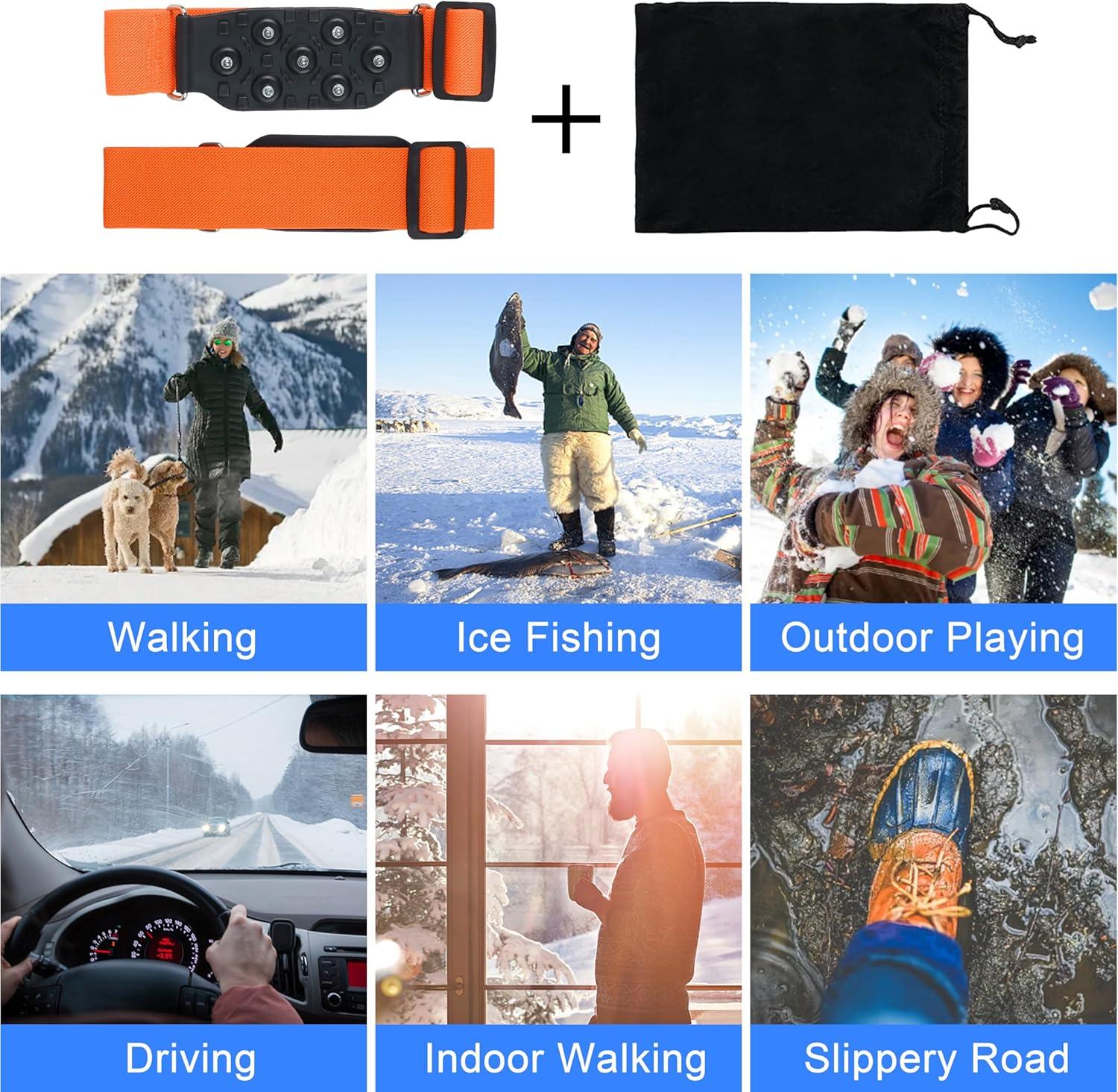 【Applications】This mid sole ice cleats for boots men women are perfect for daily winter use, such as walking the dog, taking walks, climbing stairs, ice fishing, short walks, etc. A must have for your winter safety, always keep a pair in the car for those tricky winter journeys