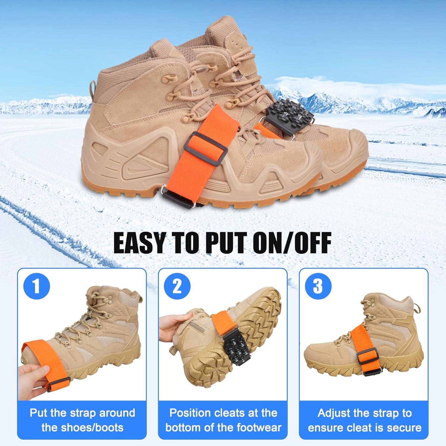 Mid-Sole Ice Cleats for Shoes and Boots Non Slip Ice Shoes Gripper Crampons for Hiking Boots Women Men Outdoor Indoor Traction Cleat Walking on Snow Winter Ice Fishing Gear(2 Pairs- Large/X-Large)
