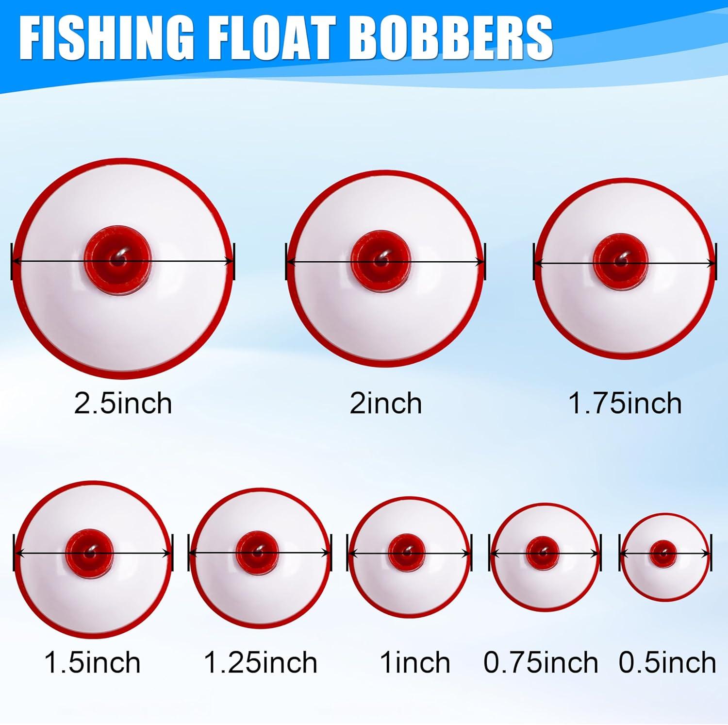 【Quantity & Size】25pcs/pack fishing bobbers floats. 6 Sizes Fishing Floats for your choice: 0.5inch, 0.75inch, 1inch, 1.25inch, 1.5inch or 2inch. These plastic fishing bobbers are practical fishing tools, can also be used as decorations in life. Suitable for fishing enthusiasts and beginners!