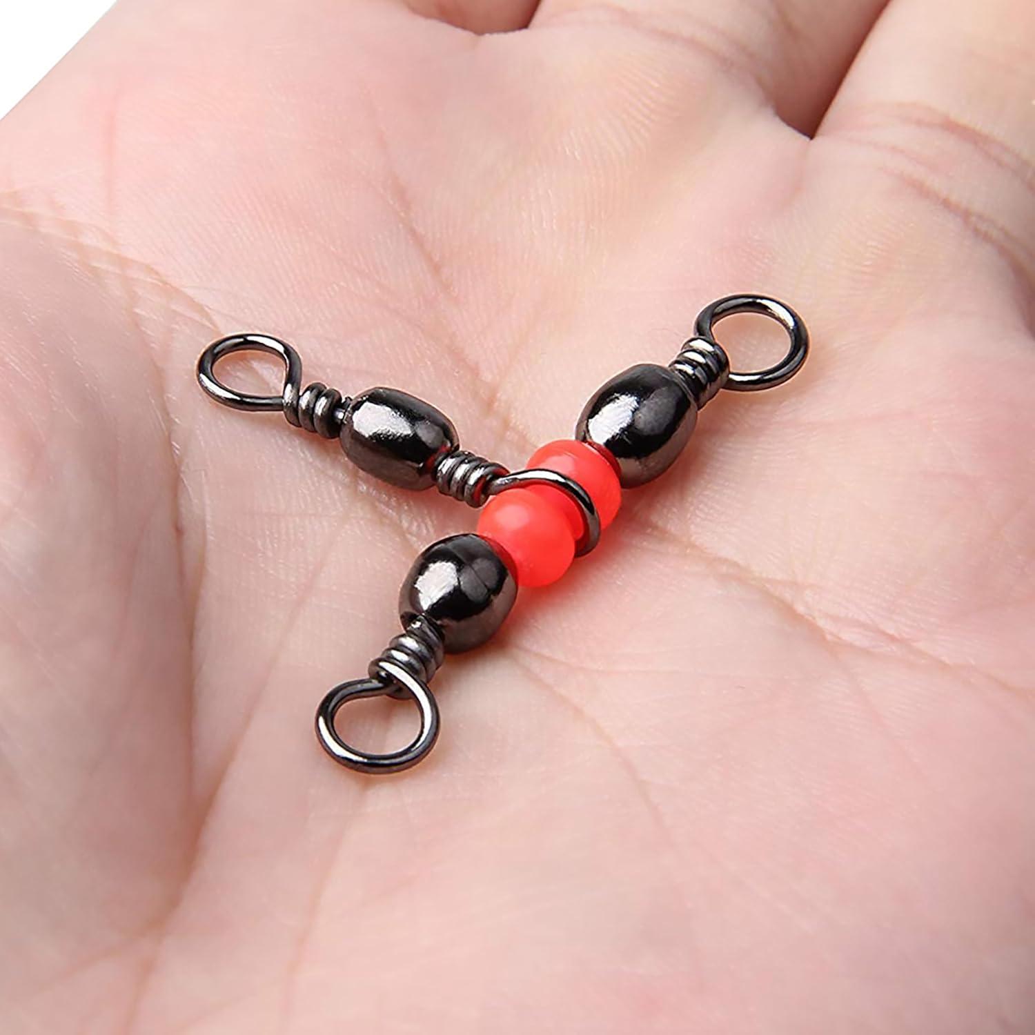 【Heavy Duty】Made of brass material with black nickel plated, the T turn 3 way fishing swivel is corrosion resistance, impact resistance and high strength. Red fishing beads add fish attraction, great for freshwater and saltwater fishing.