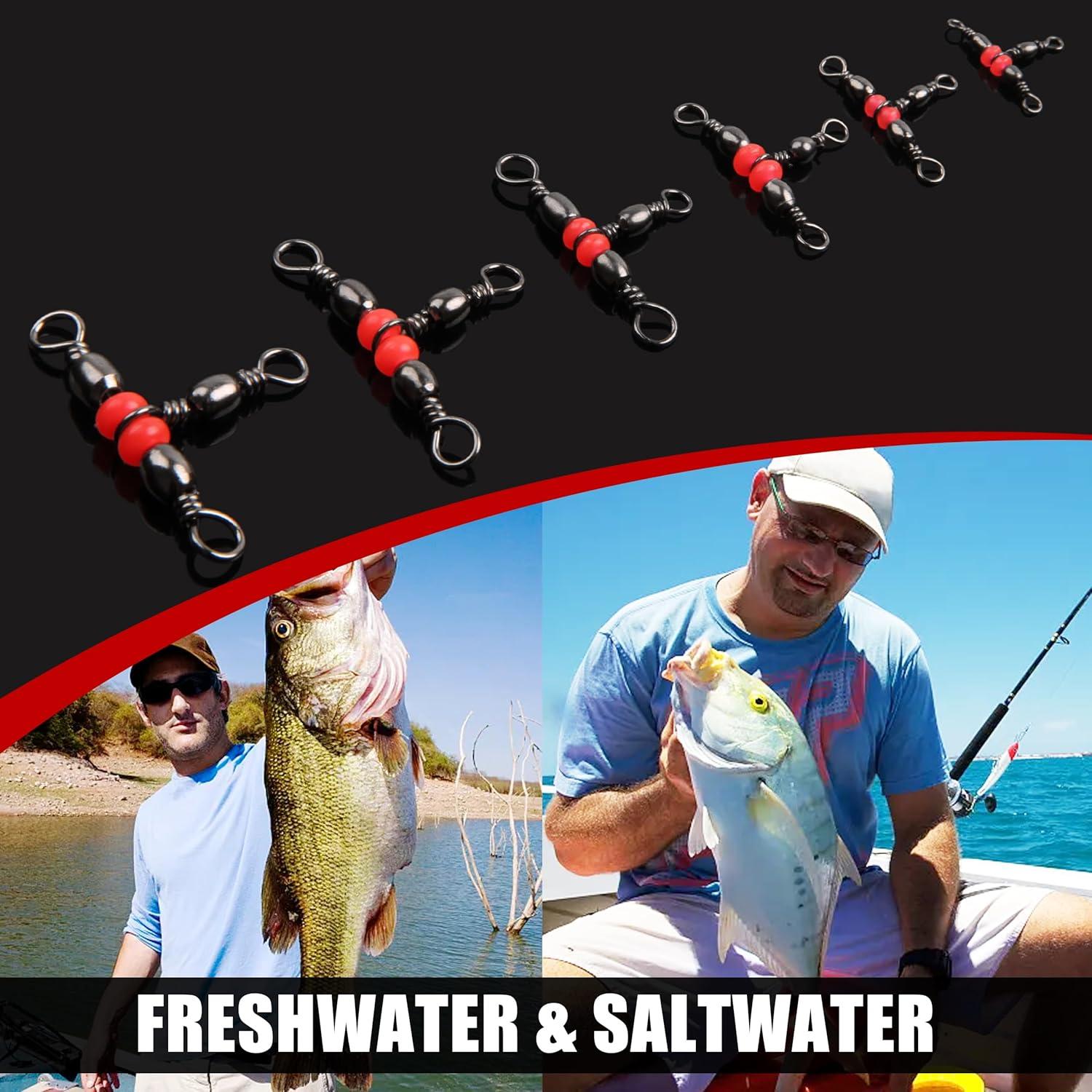 【Heavy Duty】Made of brass material with black nickel plated, the T turn 3 way fishing swivel is corrosion resistance, impact resistance and high strength. Red fishing beads add fish attraction, great for freshwater and saltwater fishing.