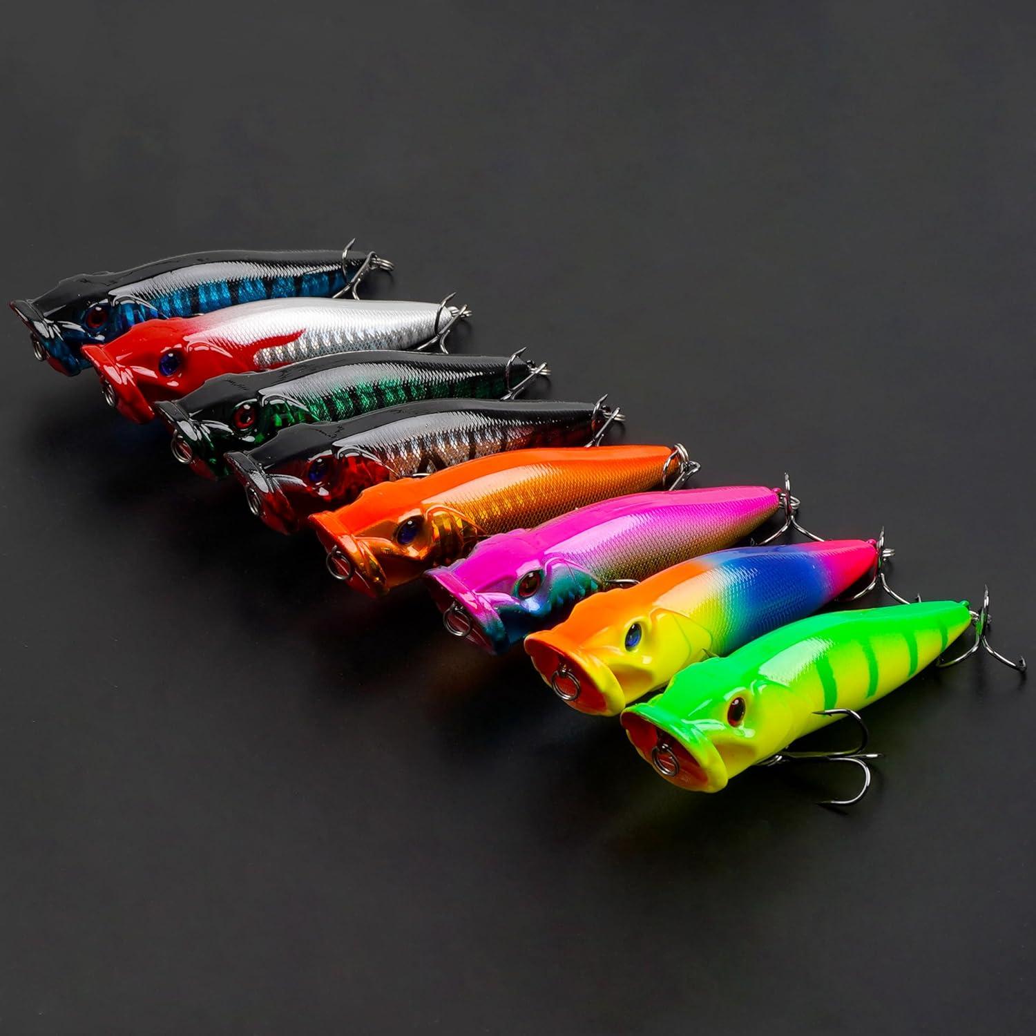 OROOTL 8pcs Fishing Popper Lures Bass Fishing Lures Hard Baits Set Colorful Poppers for Freshwater Saltwater Pike Bass Trout Walleye Panfish