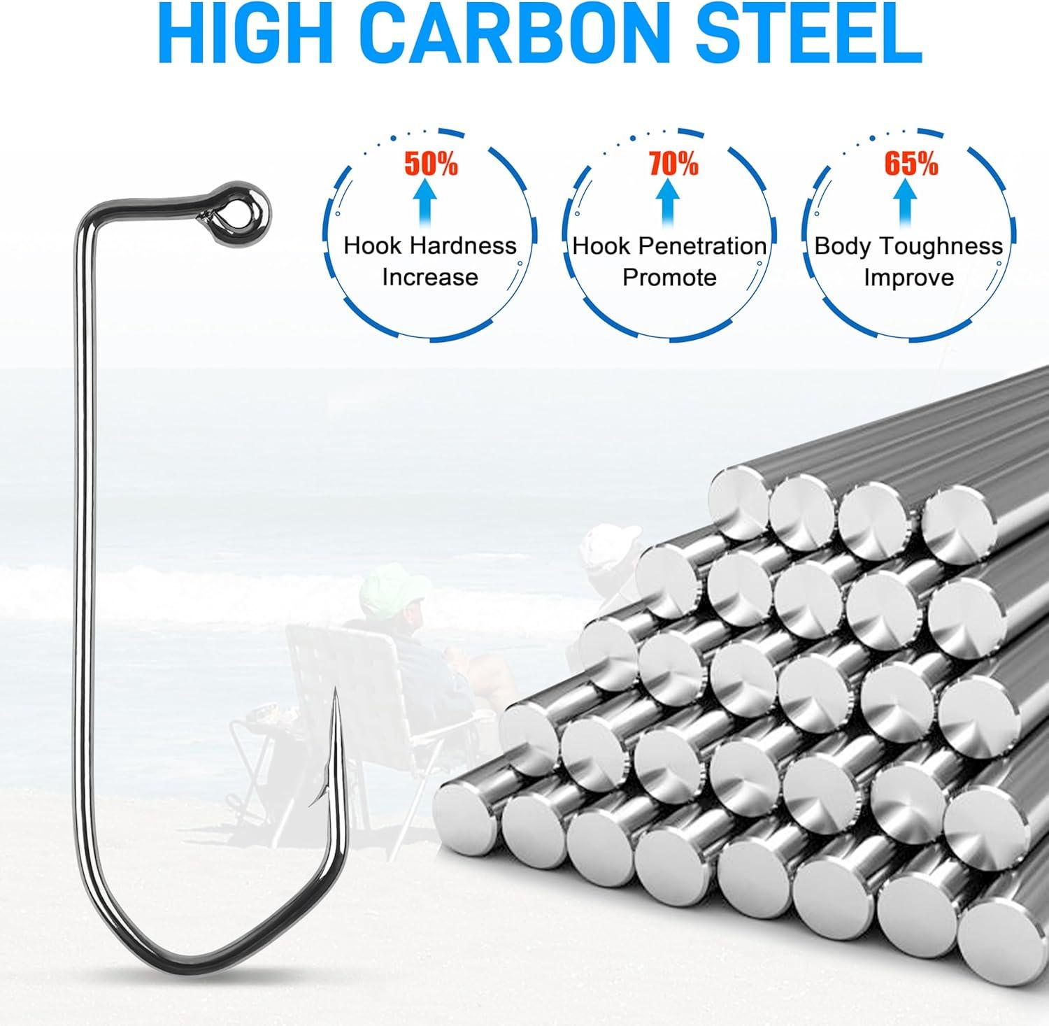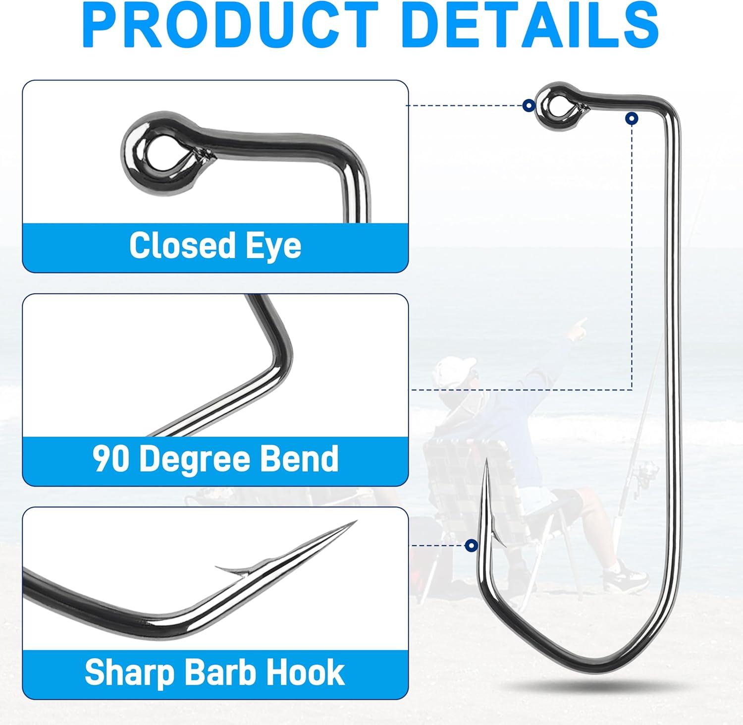 🐟【Durable Material】Made of high carbon steel material, the 90 degree jig hook is super sharp and durable, extremely strength, black nickel plated surface, which is high corrosion resistance to saltwater.