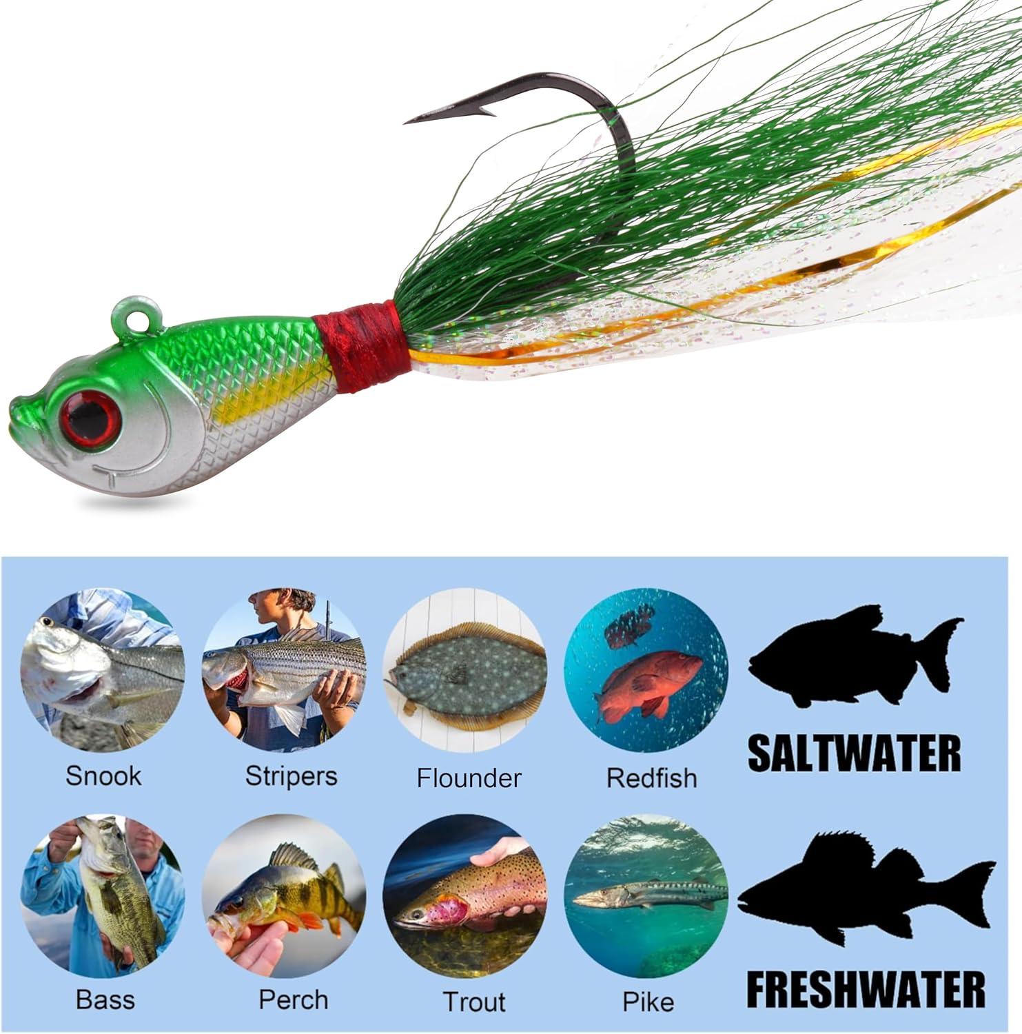 【Widely Target】These bucktail jigs saltwater target Striped Bass, Largemouth Bass, Perch, Yellowtail, Steelhead, Snapper, Redfish, Zander, Walleye, Snook – Well just about anything that swims!
