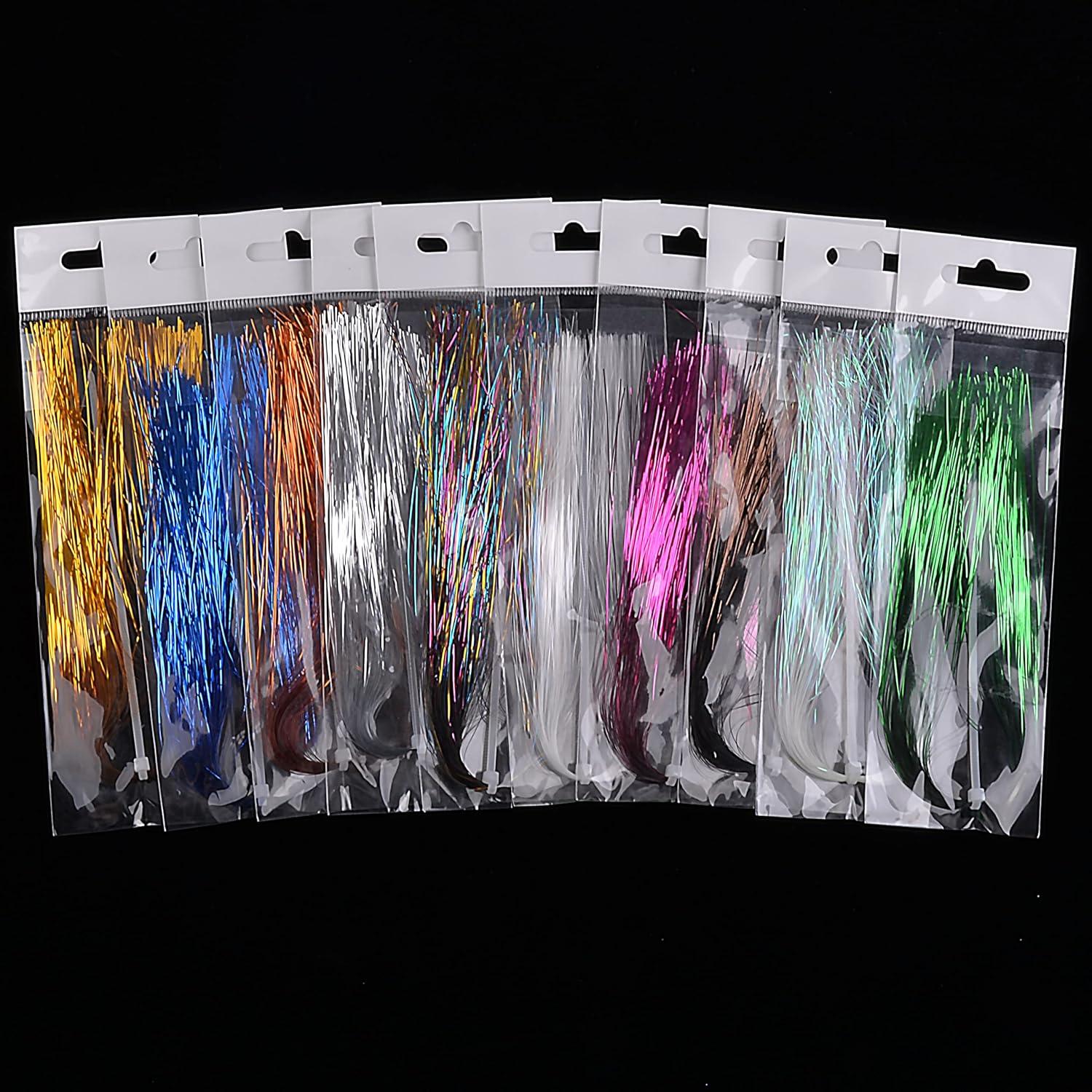 【What You Get】10 Packs Crystal Flash Skirts. (Including 10 different colors, 1 pack/color.) Size: 0.25mm, 30cm length, about 350 strands/pack.