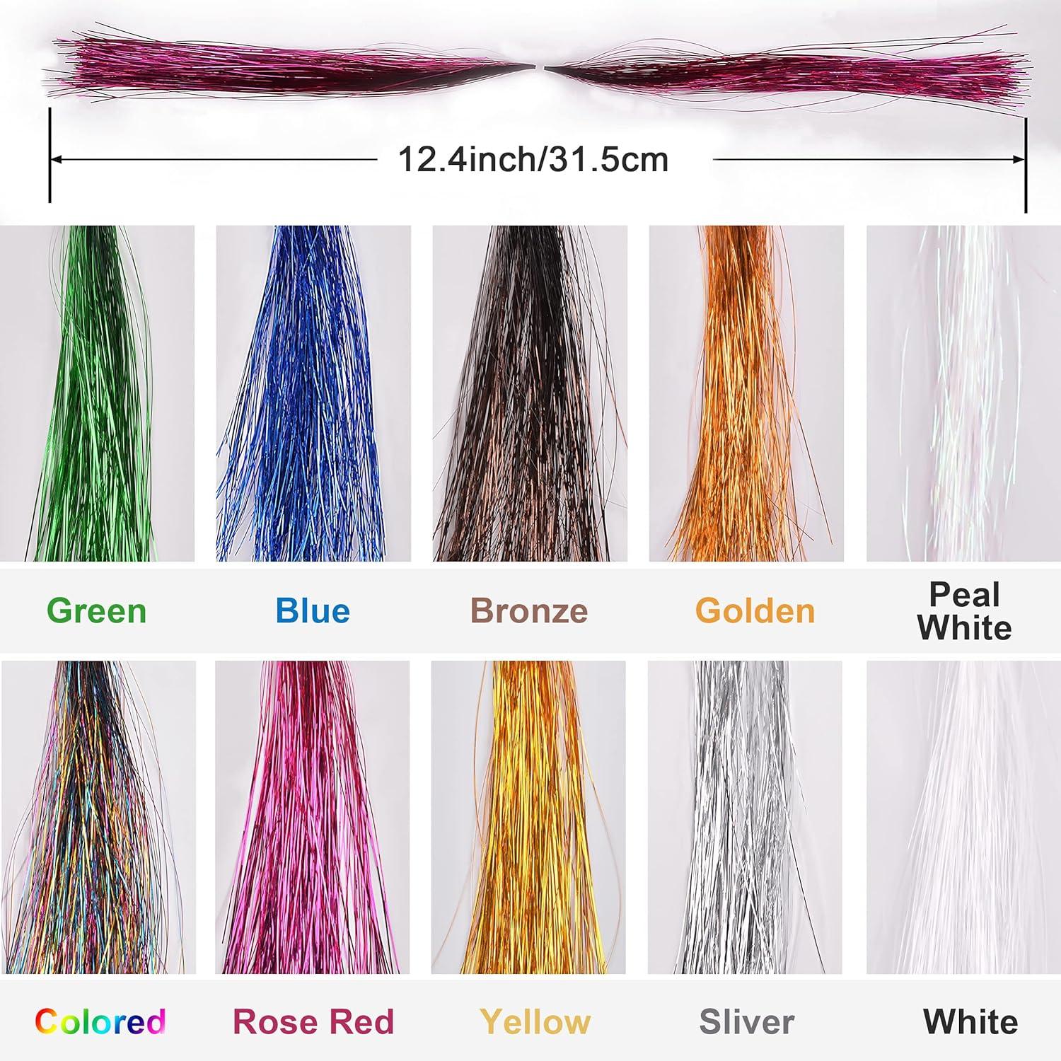【Attractive Colors】Great colors with 3D effect from each strand. 10 colors: yellow, green, blue, purple white, white, colored, brown, rose red, silver, golden.