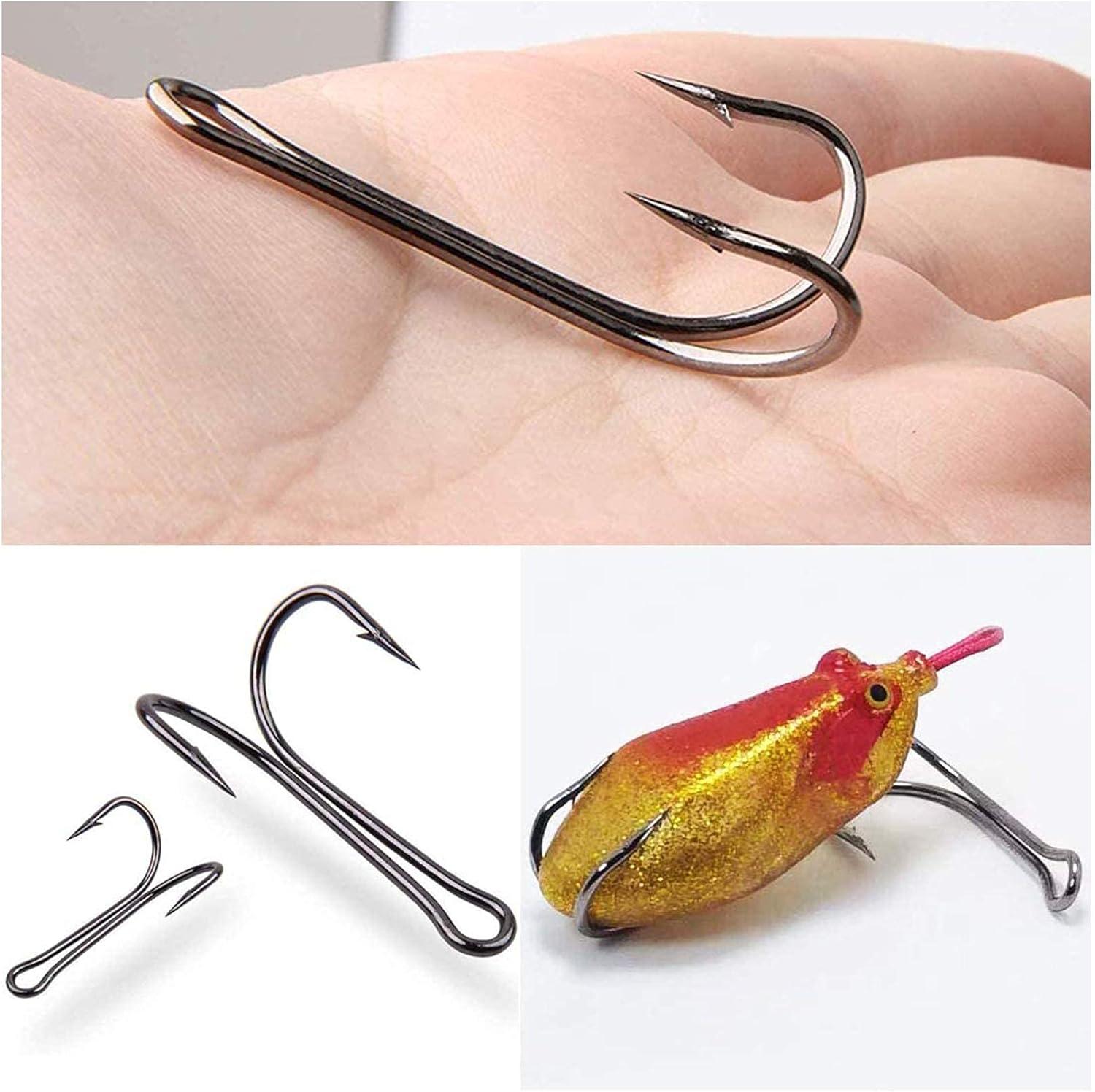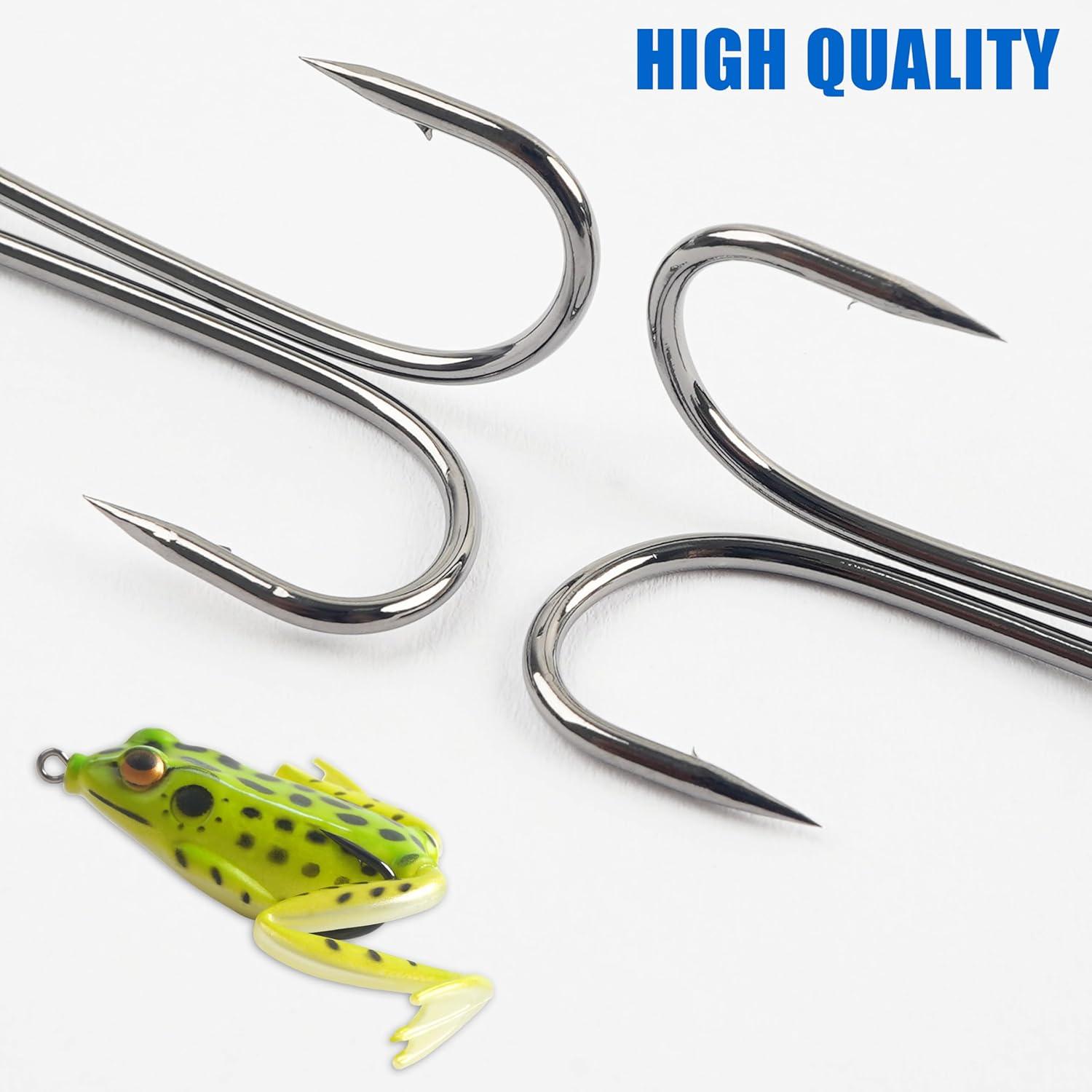 【PRACTICAL】This double fish hooks fit most frog style lures, can be quickly rigged onto lures without a split ring. They are designed to increase your hookup ratio by a lot especially when fish are not fully committed to the frogs.