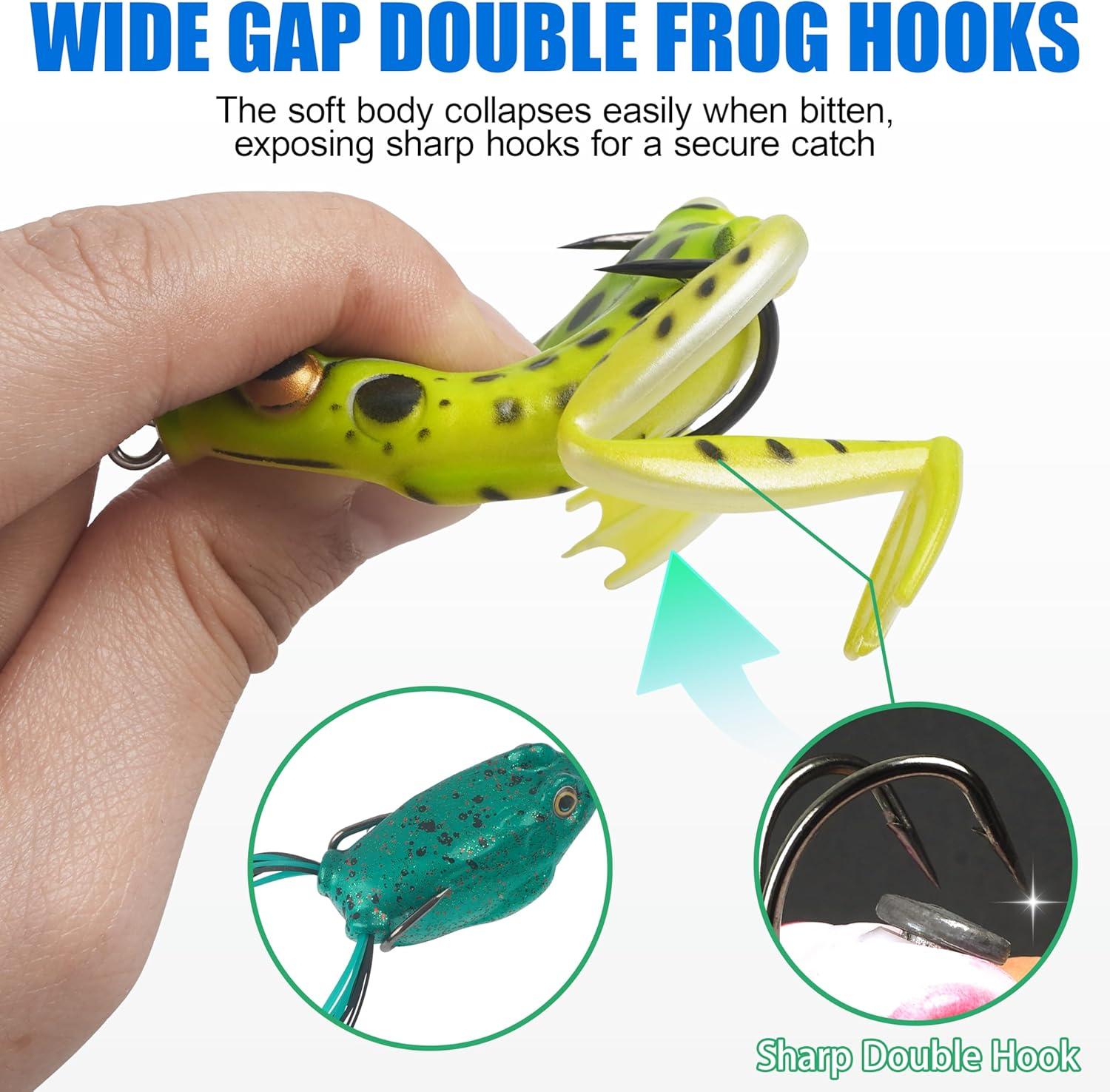 【PRACTICAL】This double fish hooks fit most frog style lures, can be quickly rigged onto lures without a split ring. They are designed to increase your hookup ratio by a lot especially when fish are not fully committed to the frogs.