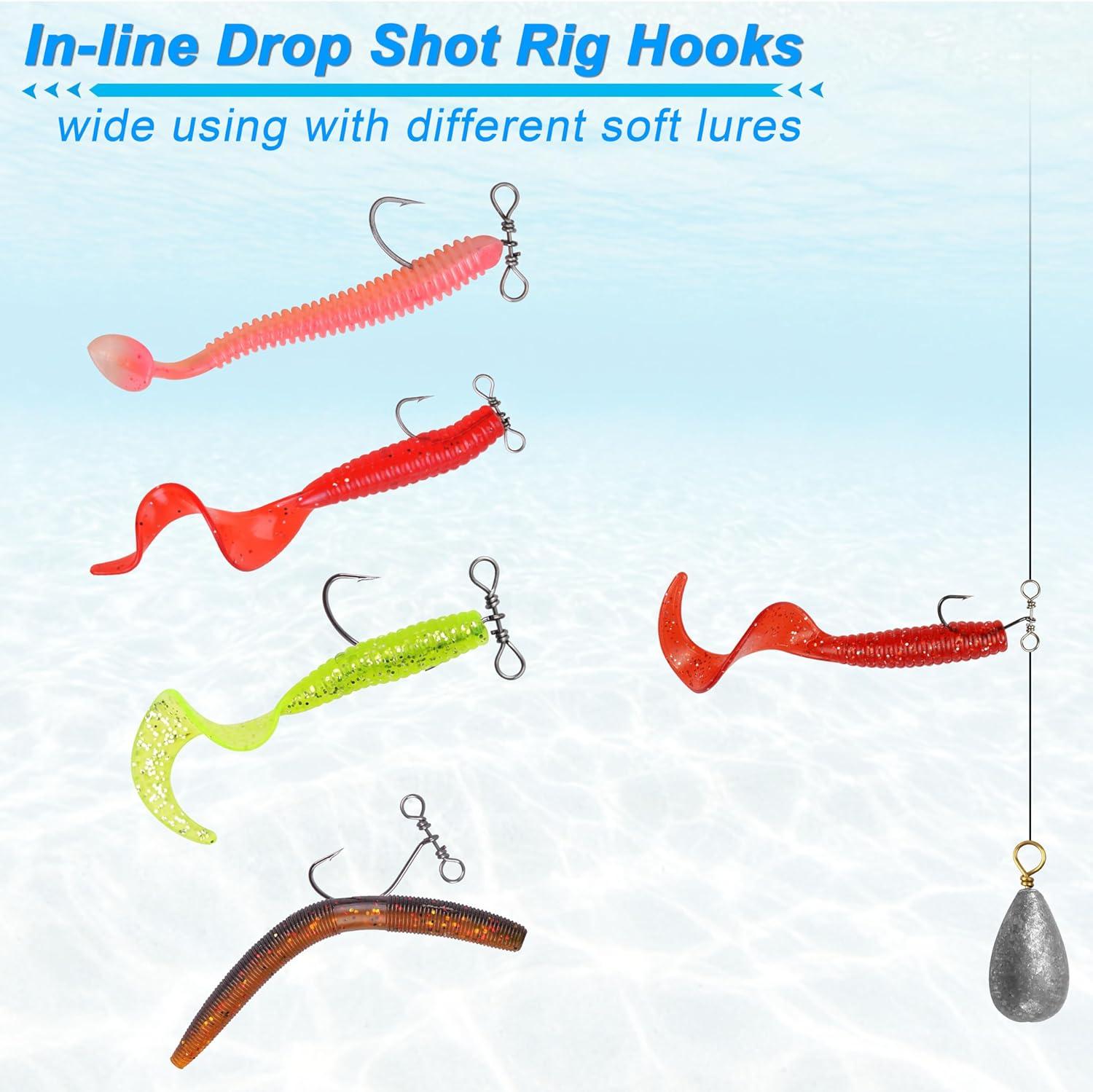 【360° Rotation】In-Line drop shot rig and swivel, allows the drop shot hooks to rotate a complete 360° without twisting the line and also keeps the hook orientated upwards, keeping the drop shot baits in the well swimming action.