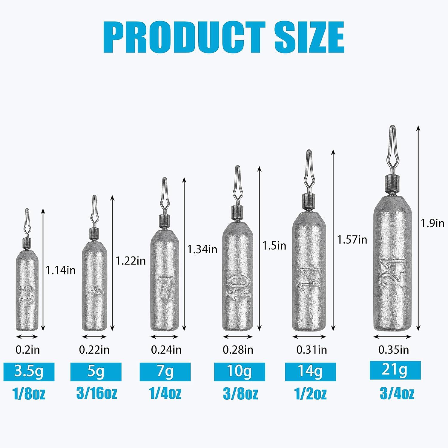 OROOTL Drop Shot Weights Pencil Shaped Fishing Weights Sinkers Set for Saltwater and Freshwater