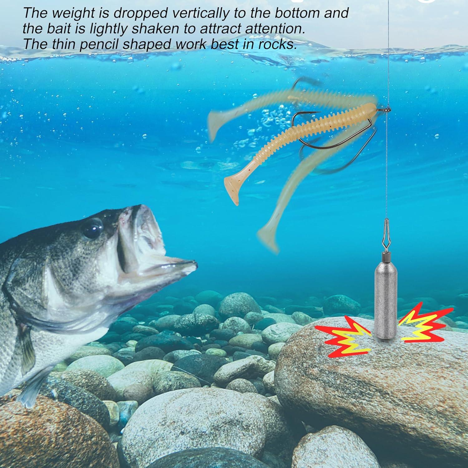 【Less Snags】Pencil Shaped Drop Shot Weights allow for a smooth retrieval in all bottom environments. Work great and come through rocks and wood without snagging easily. The thin pencil sinkers work best in rocks, make drop-shotting fun and easy.