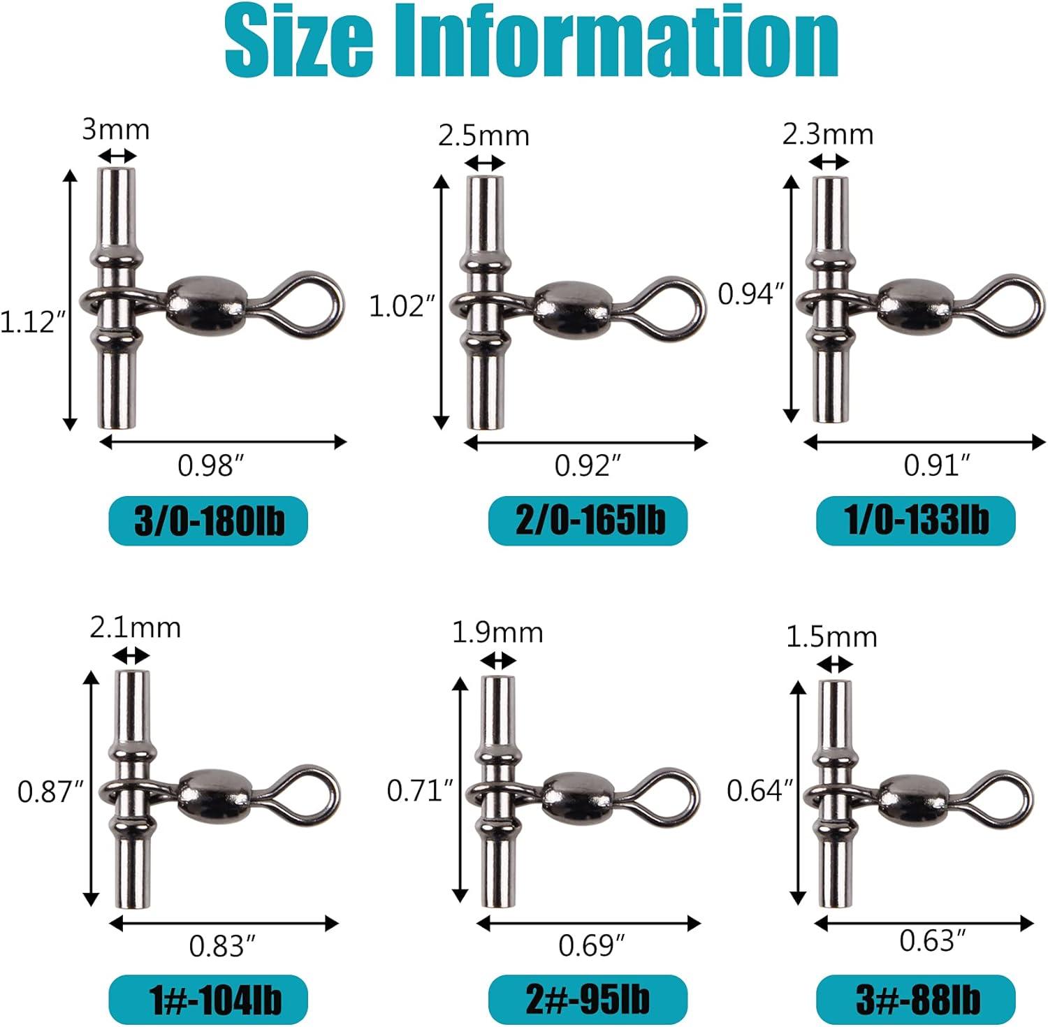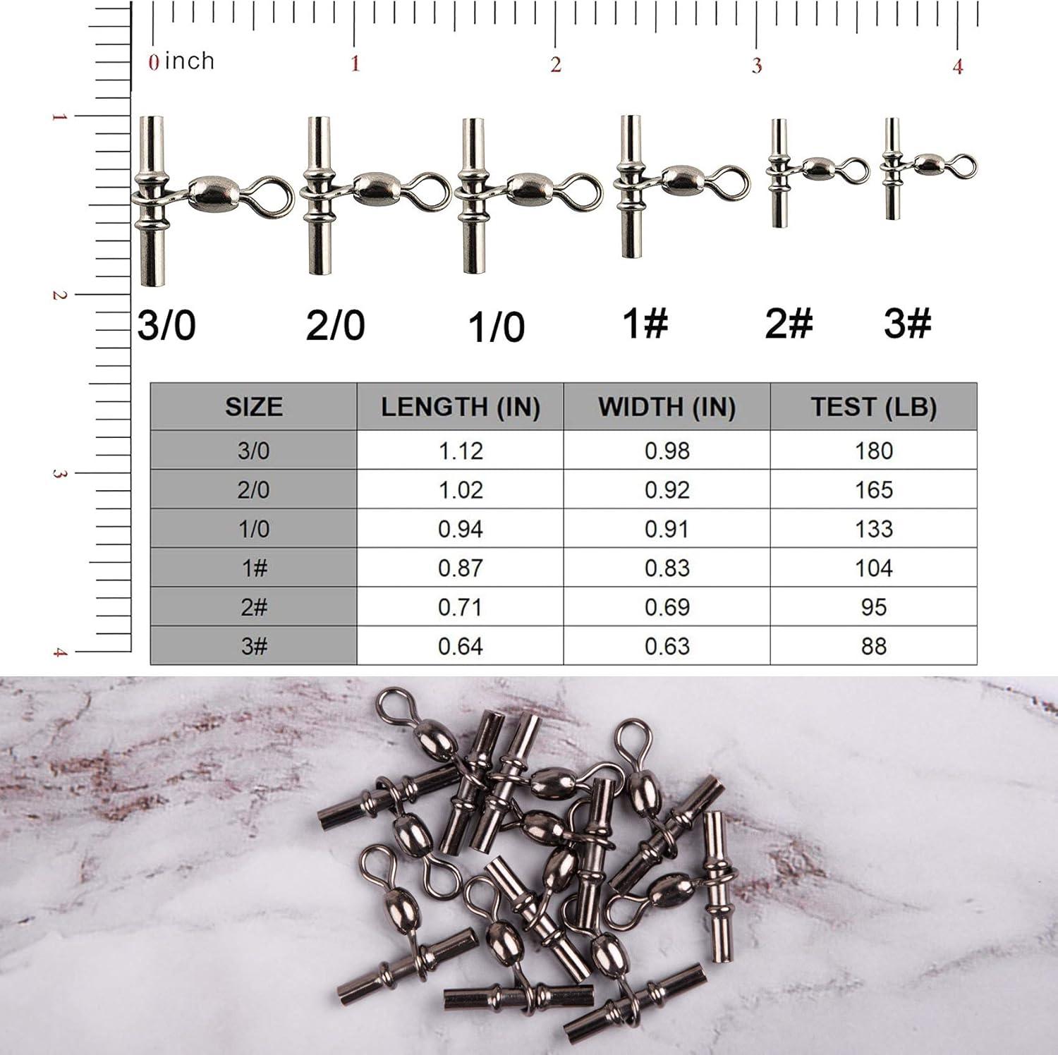 OROOTL Fishing Cross Line 3 Way Swivel, 60pcs T-Shape Sleeve Swivels for Deep Drop Rigs Heavy Duty Crossline Crane Swivel Connecter Saltwater Fishing Tackle(1#-60PCS)