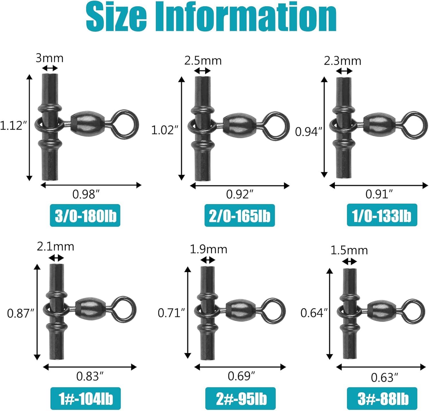 OROOTL Fishing Cross Line 3 Way Swivel, 60pcs T-Shape Sleeve Swivels for Deep Drop Rigs Heavy Duty Crossline Crane Swivel Connecter Saltwater Fishing Tackle(2/0-60PCS)
