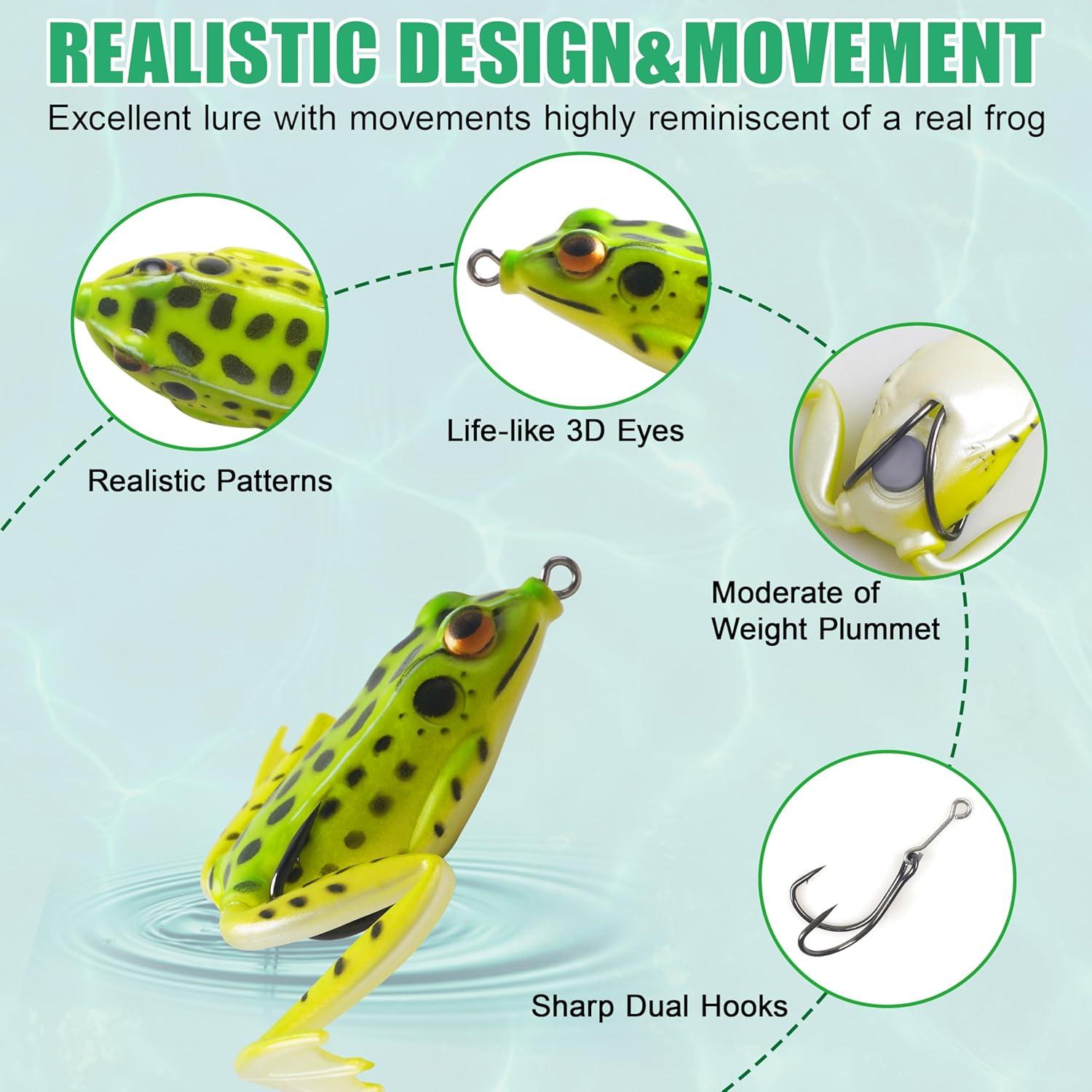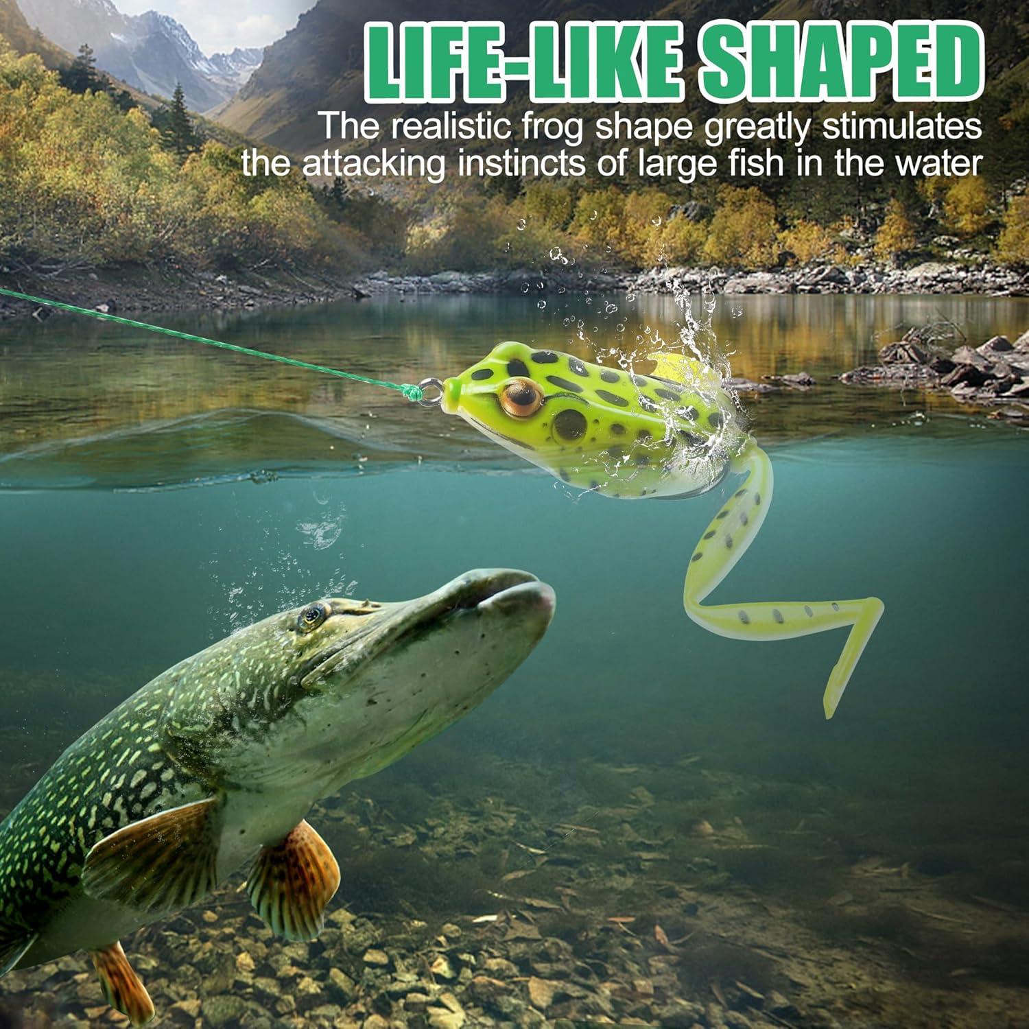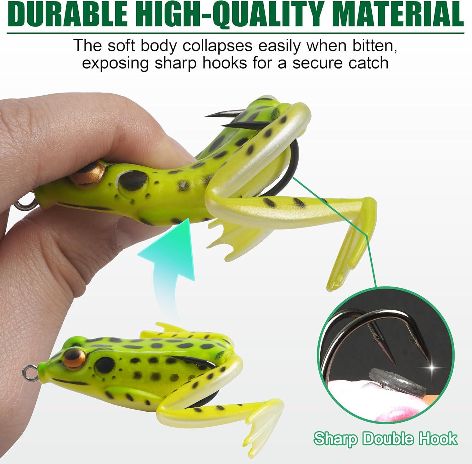 【HIGH QUALITY】The frog fishing baits is made of high-quality rubber, which is very soft and elastic, can effectively resist fish bite. Sharp and strong hook makes it difficult for large fish to escape after biting.