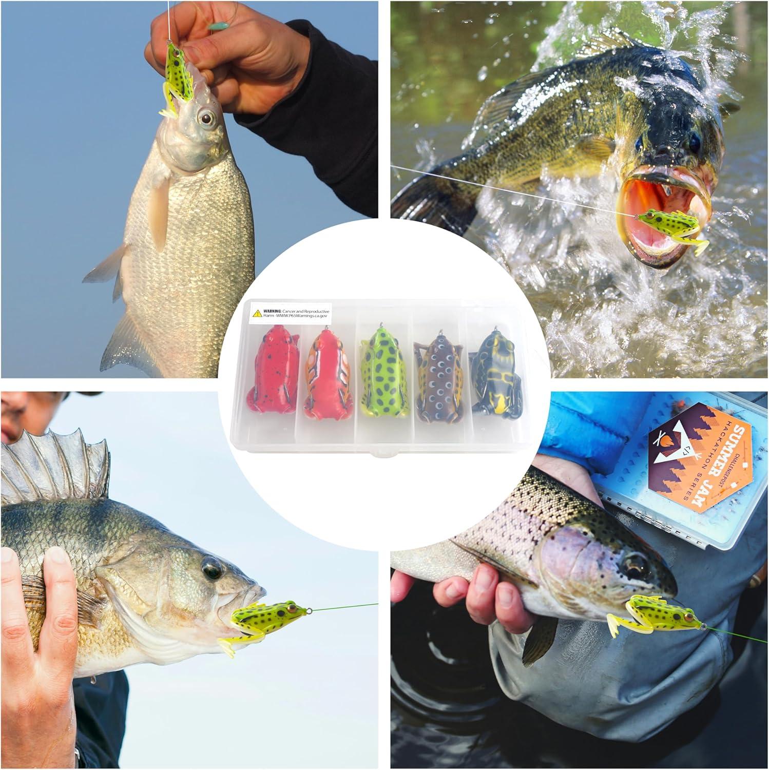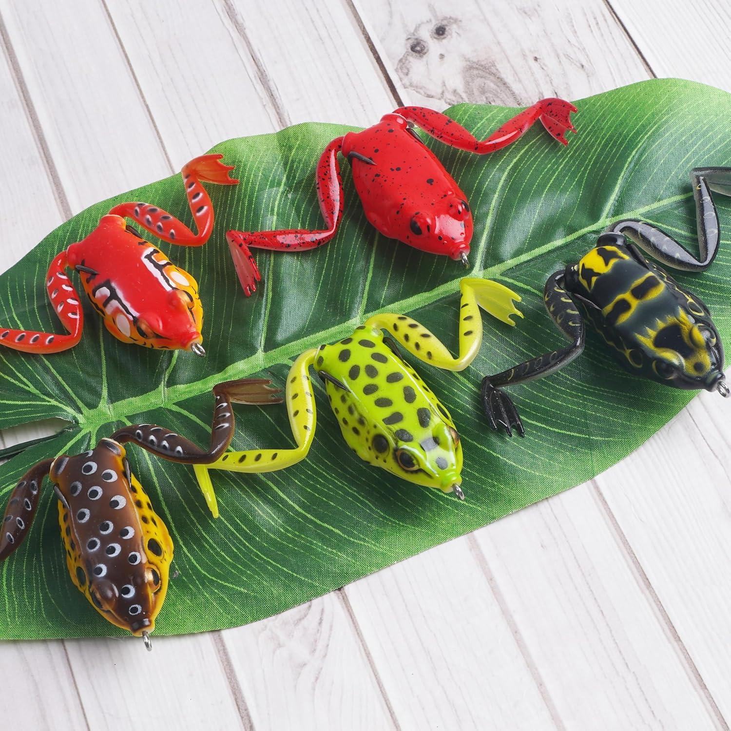 OROOTL Fishing Frog Lures, 5pcs Soft Frog Fishing Lures Kit Weedless Bass Fishing Lure Artificial Baits for Trout Pike Freshwater Saltwater