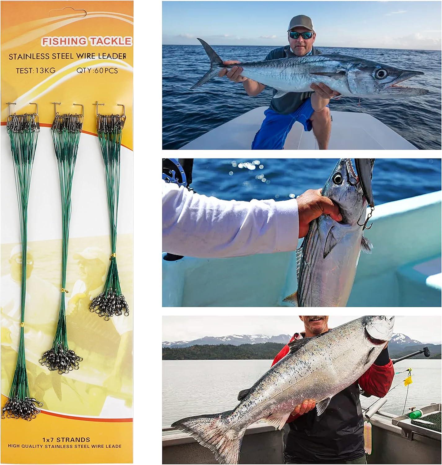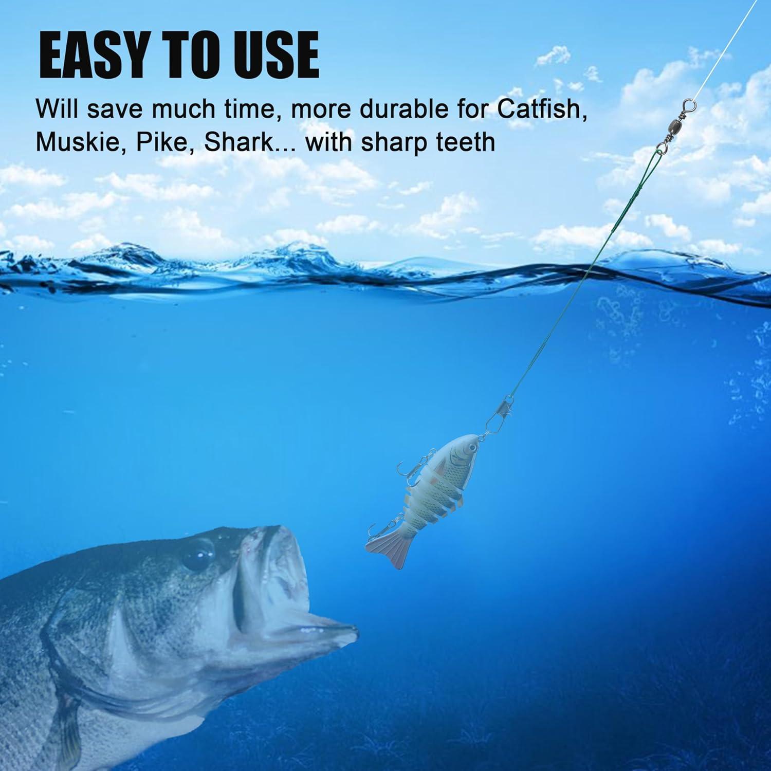 【FUNCTIONAL】The stainless steel fishing leaders can protect the front end of the main line to avoid rubbing obstacles, can also hide main line, reduce the vigilance after the fish found the fishing line, and offset the instantaneous pulling force that may occur after the fish bite hook and play a buffer role.