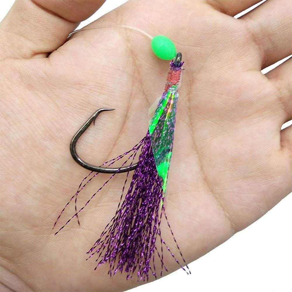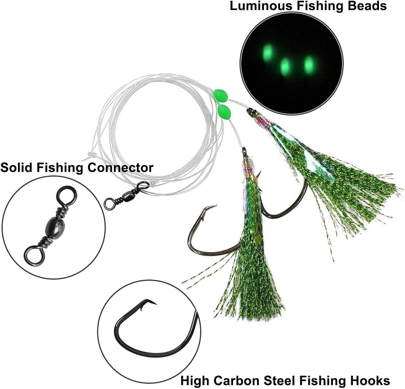 【ATTRACTIVE】Luminous fishing beads can attract fish at night or deep drop area easily, flasher silk and laser fishskin can reflect light, thus helping the fishing bait rigs achieve better attraction.