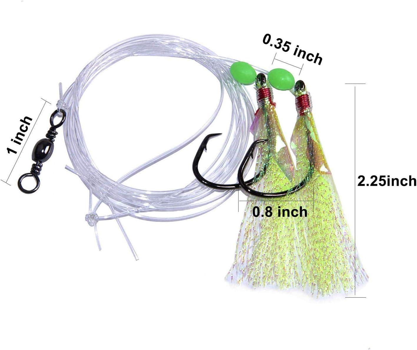 【PREMIUM PARTS】One set fishing rigs content: ball bearing swivel + mono line + fish skin + flasher silk + 2 offset circle hooks + 2 luminous fishing beads. Start fishing anytime!