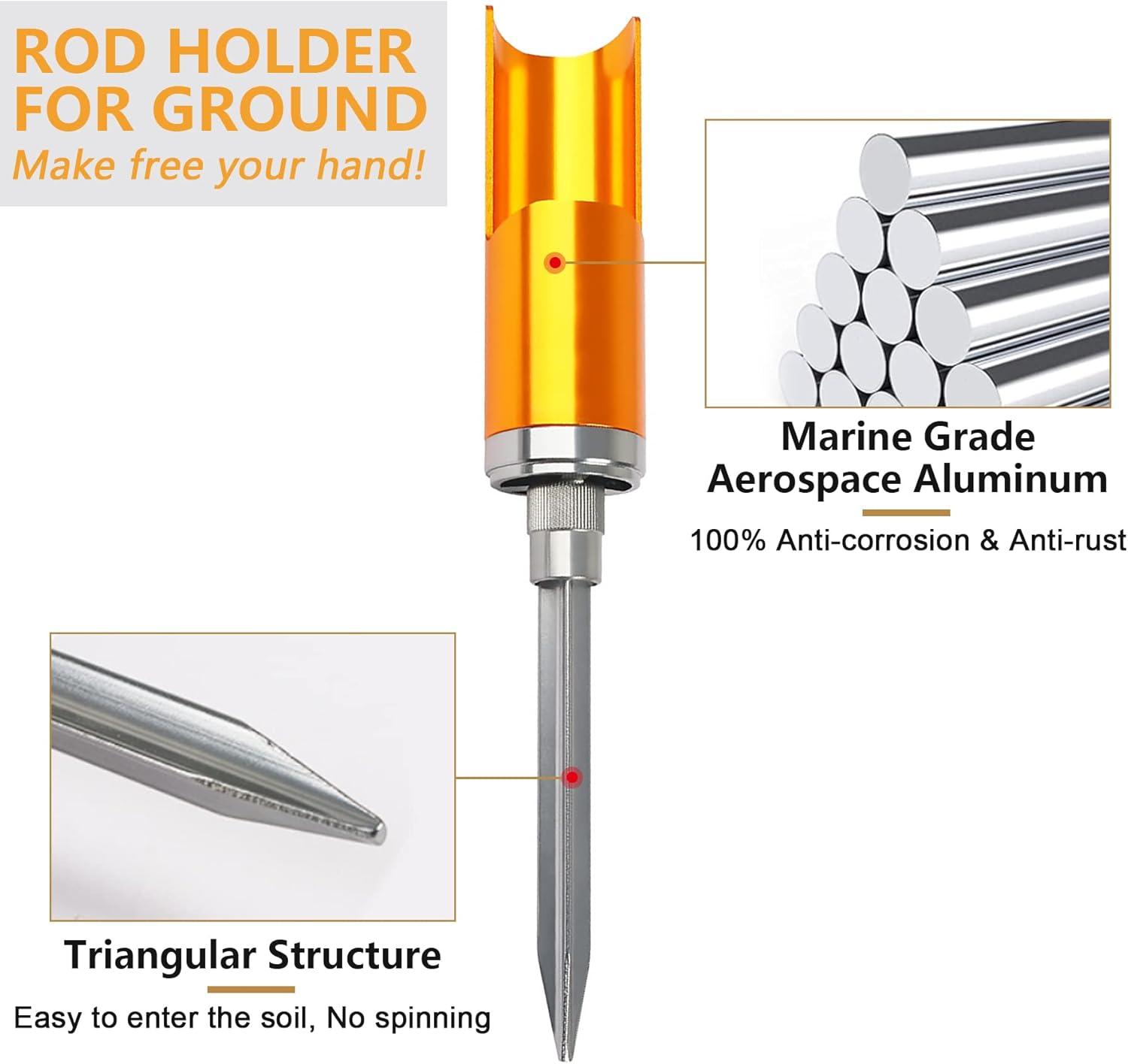 【STABLE】Prism shape fishing pole holder is sharp and easily goes into various soils, mud, sand, rock cracks, keep your rod stable and windproof.