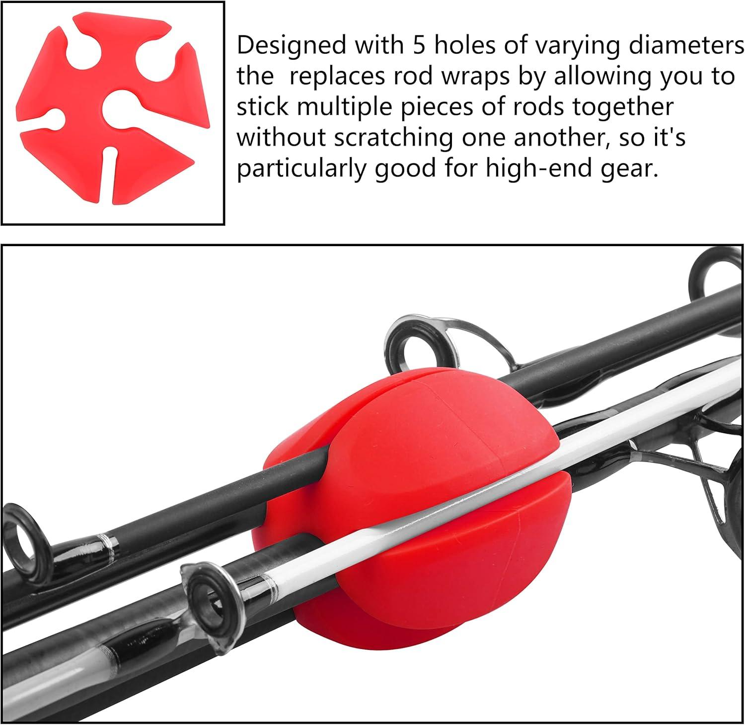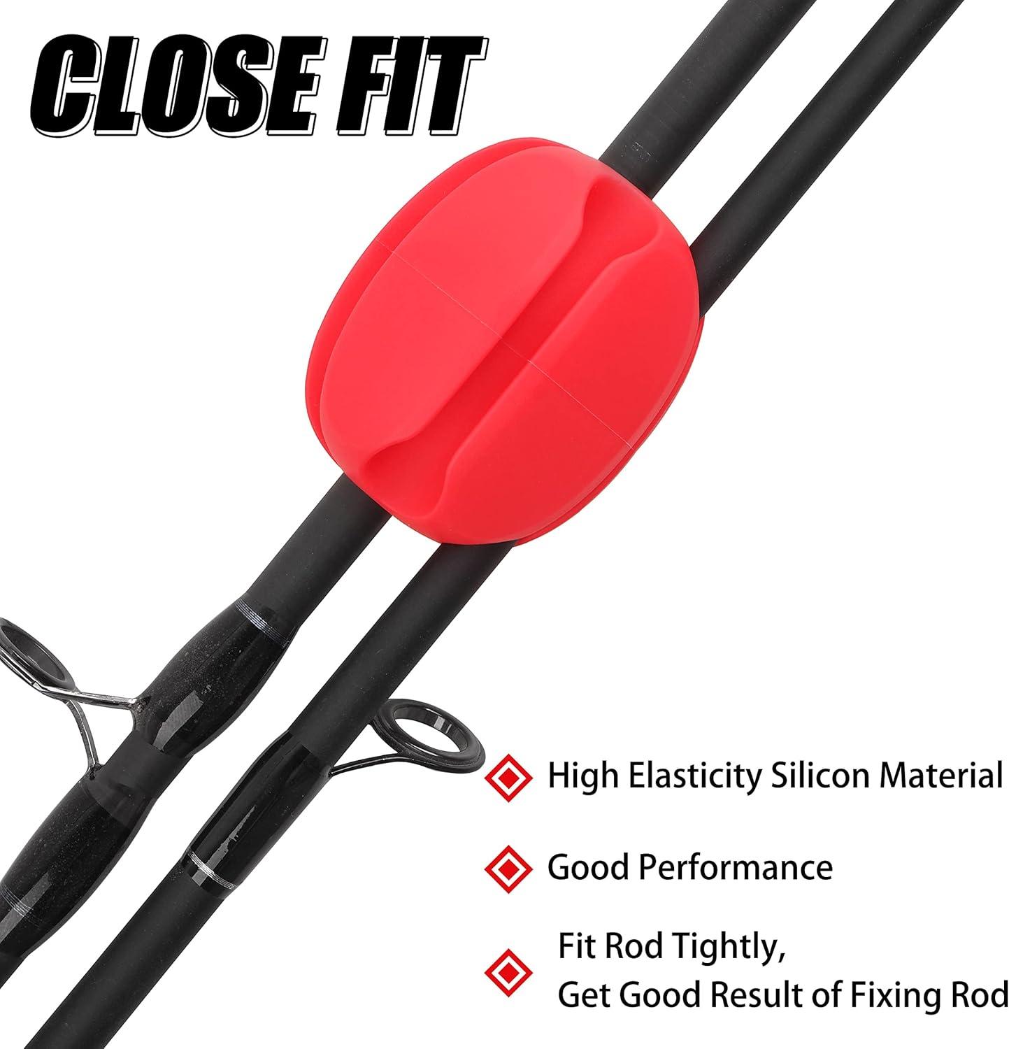 OROOTL Fishing Rod Holder Straps, 2pcs Silicone Fishing Rod Straps 5-Holes Portable Fishing Pole Holder Fixed Ball Fishing Pole Puller Accessories(Red-2pcs)