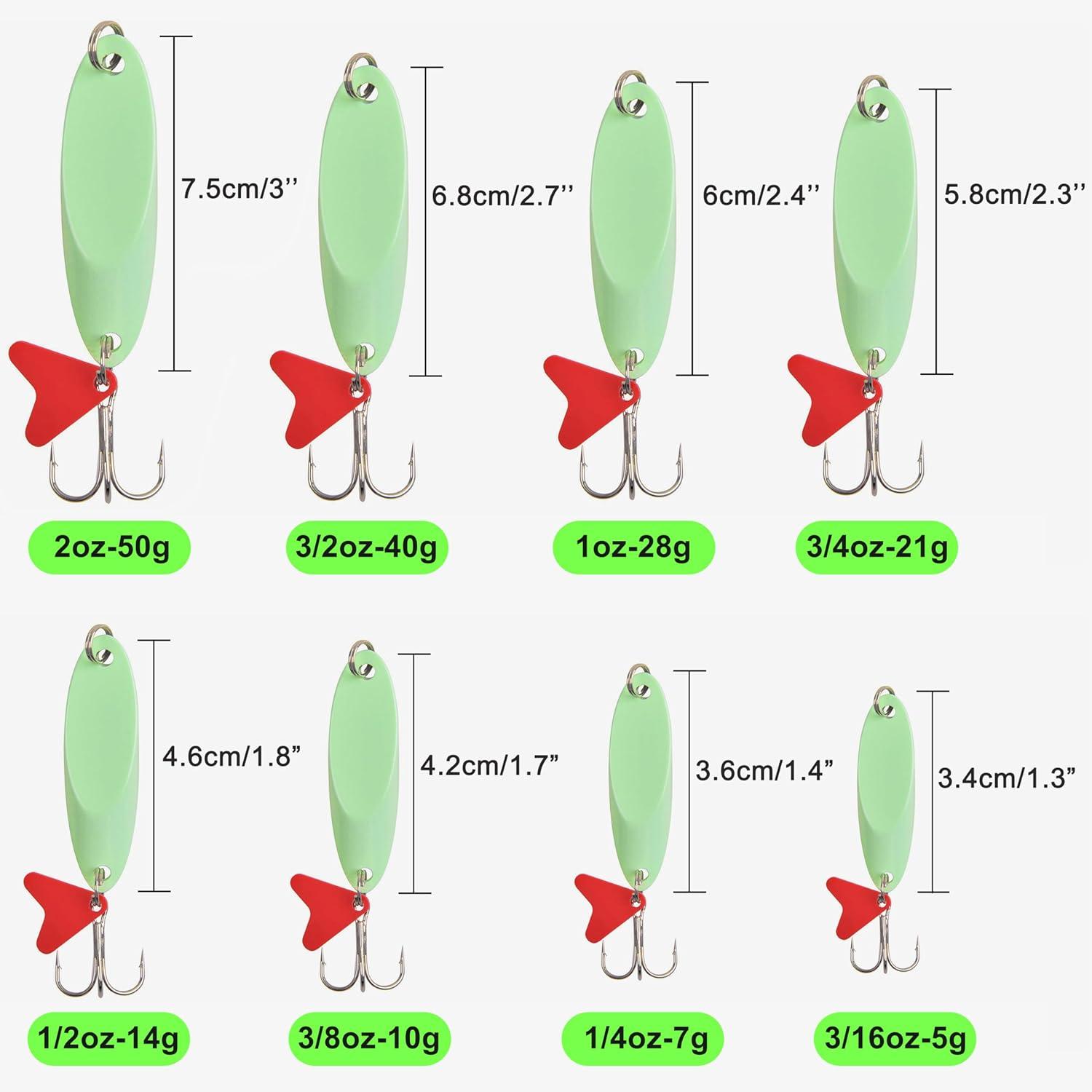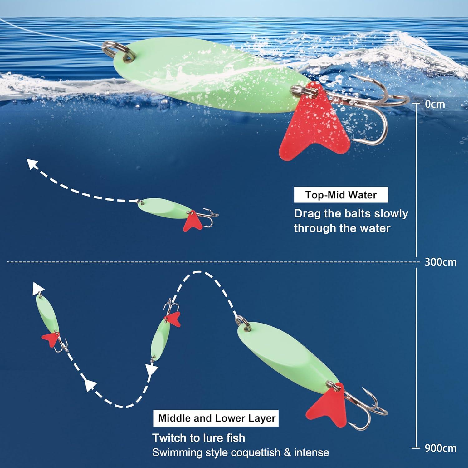 ๐ GLOW SPOON LURE: The fishing spoons adopt luminous coating, high brightness improves attraction, is more penetrative and more attractive to the target fish species.