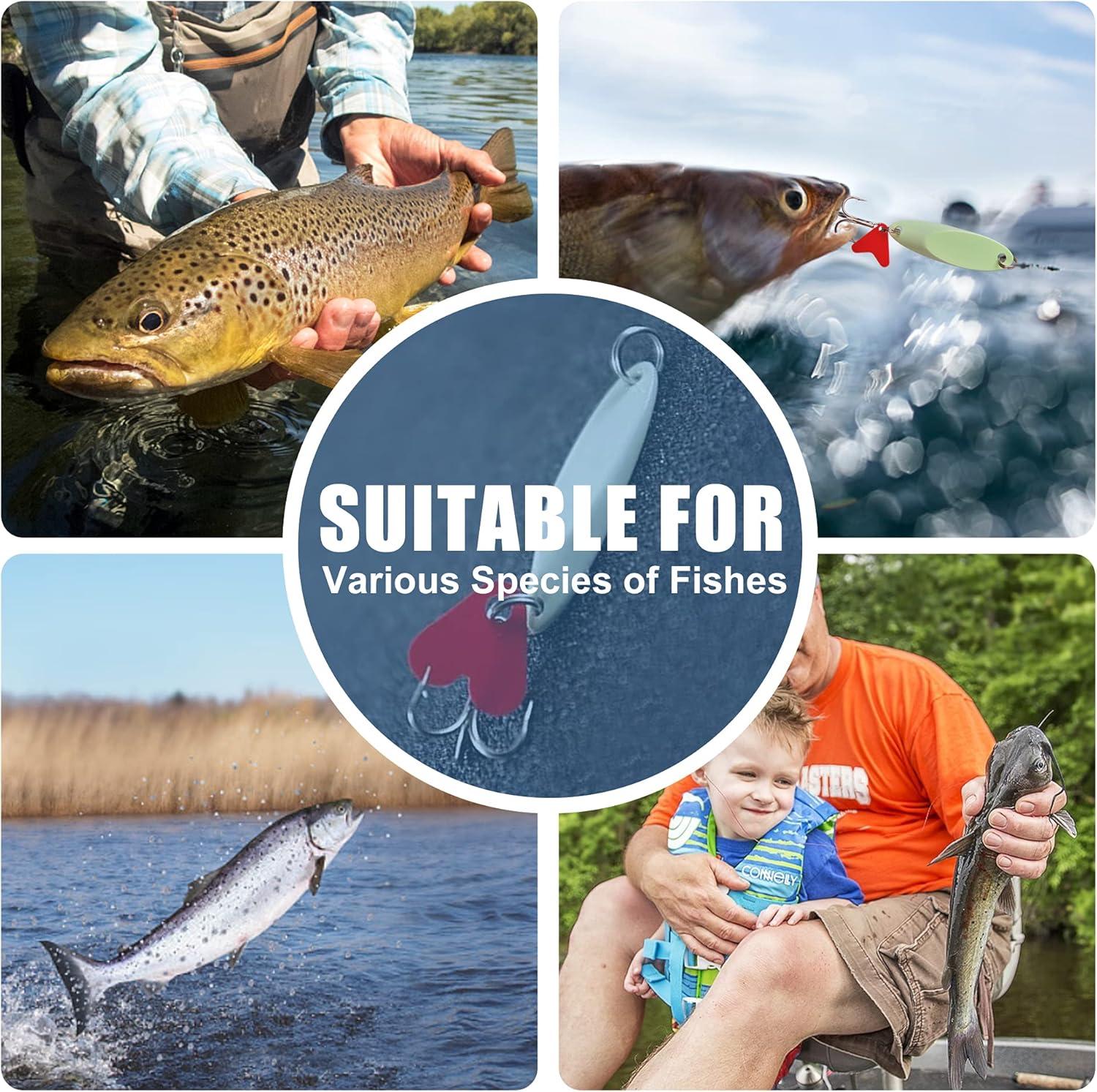 ๐ WIDELY TARGET: A wide range of retrievals in fishing bottom, middle and near-surface. Can be used for trolling, long casting and jigging. Metal spoon baits are used widely for most target fish species such as trout, panfish, bluegill, crappie, bass, catfish, perch, Kingfish, walleye etc. Application for saltwater and freshwater.