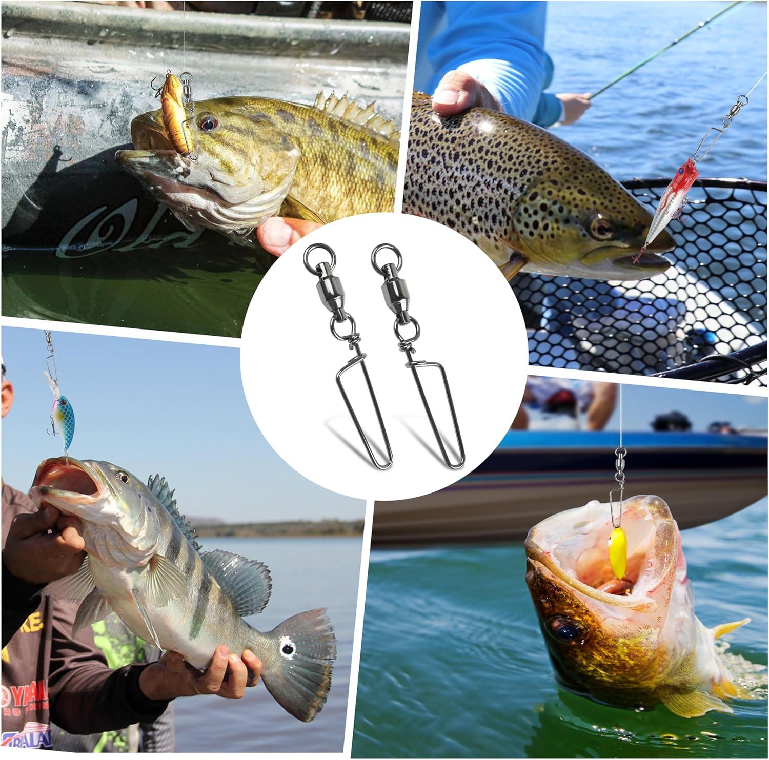 ✅【FREELY SPIN】The snap swivels fishing tackle has built-in 6 bearing balls, which can rotate at high speed by themselves. It will provide more stable connection and durable using. That will reduce your fishing line risk of twisting even breaking.