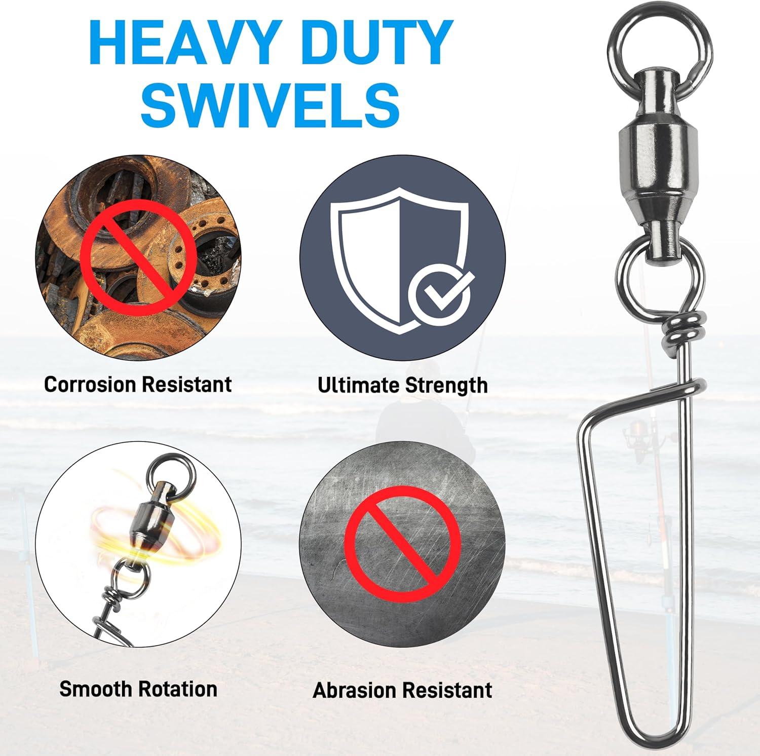 ✅【DURABLE】The stainless steel and black nickel fishing snap swivel could prevent these from rusting in saltwater, tensile strength and longevity far beyond the ordinary fish snap swivels.
