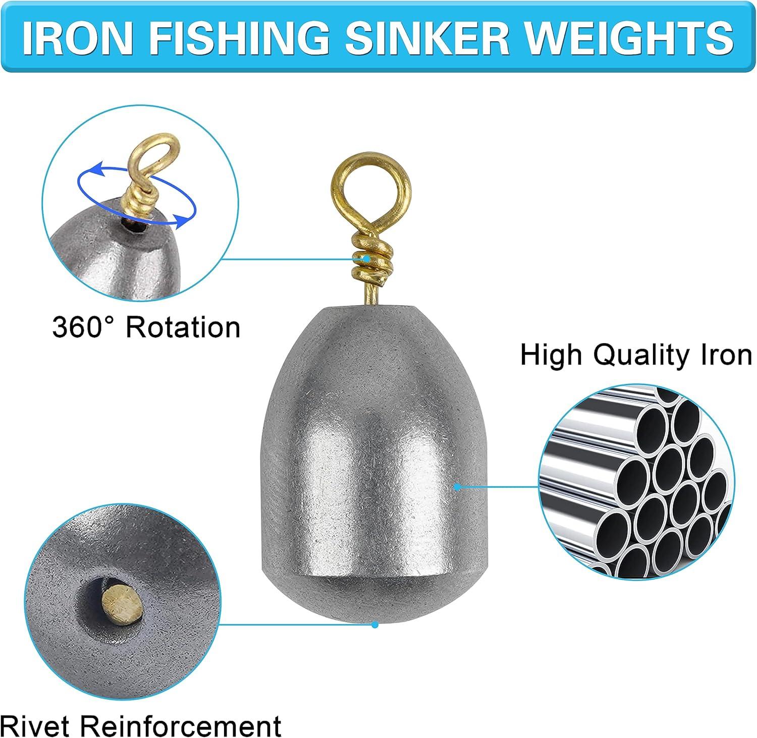 【360° ROTATION】Each of iron weights features a brass ring eyelet that gives you greater movement. Say goodbye to fishing sinkers and weights that leave you with twisted lines.