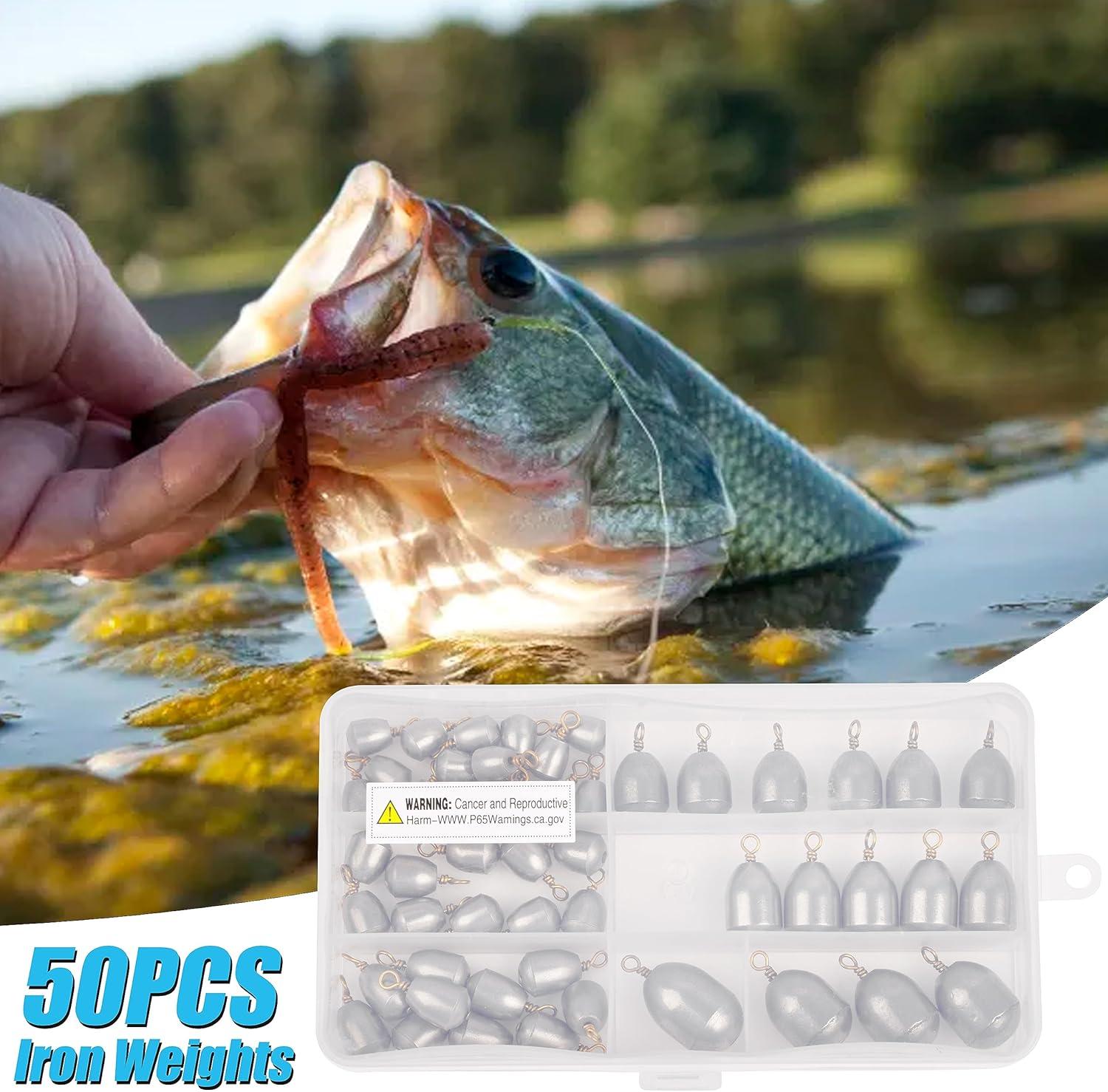 OROOTL Fishing Weights Sinkers Kit, 50pcs Iron Fishing Sinkers Assorted Bass Casting Weights Water Drop Bell Sinker with Brass Ring Saltwater Freshwater 1/8oz-1oz