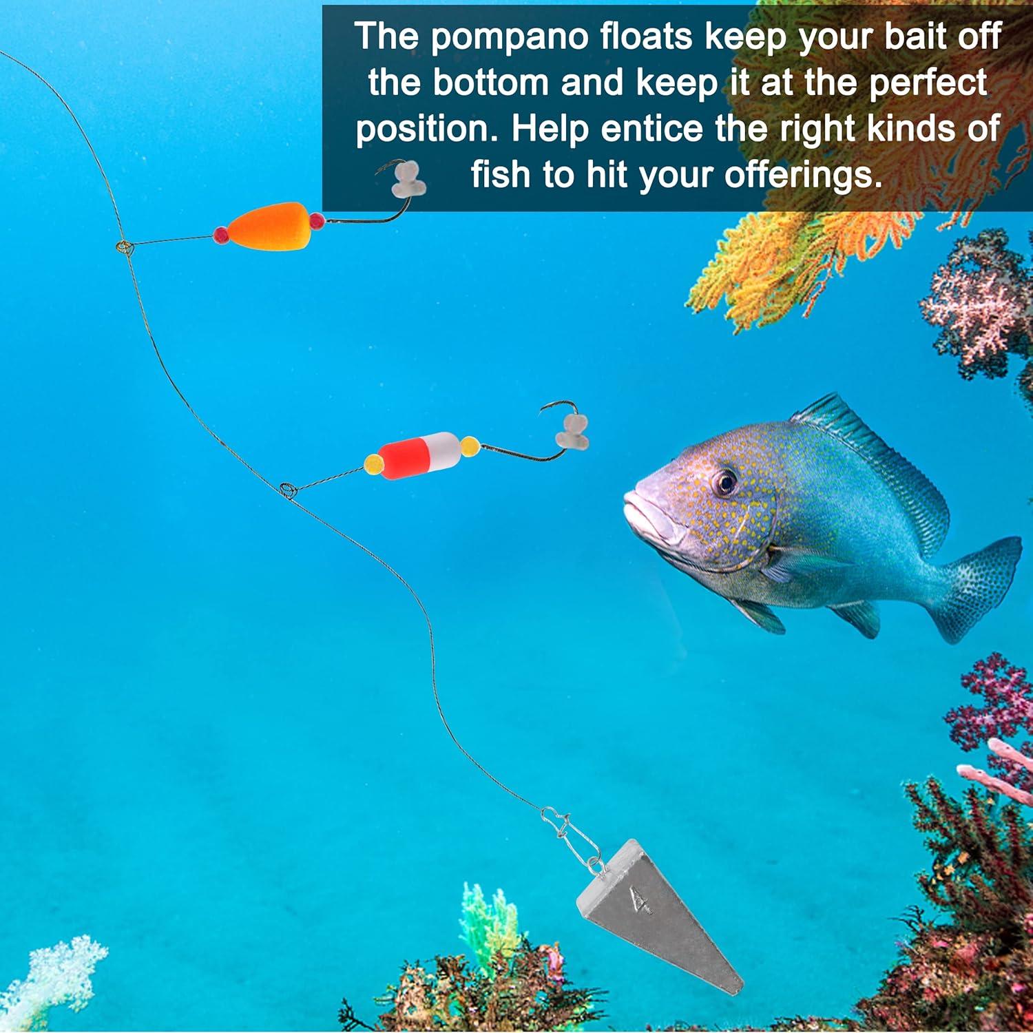 🐟【Easy to Use】 Its smooth surface can reduce friction in the water. There is a smooth hole in the center of the pompano rig floats, which is applied to pass through the fishing line and make various fishing rigs.