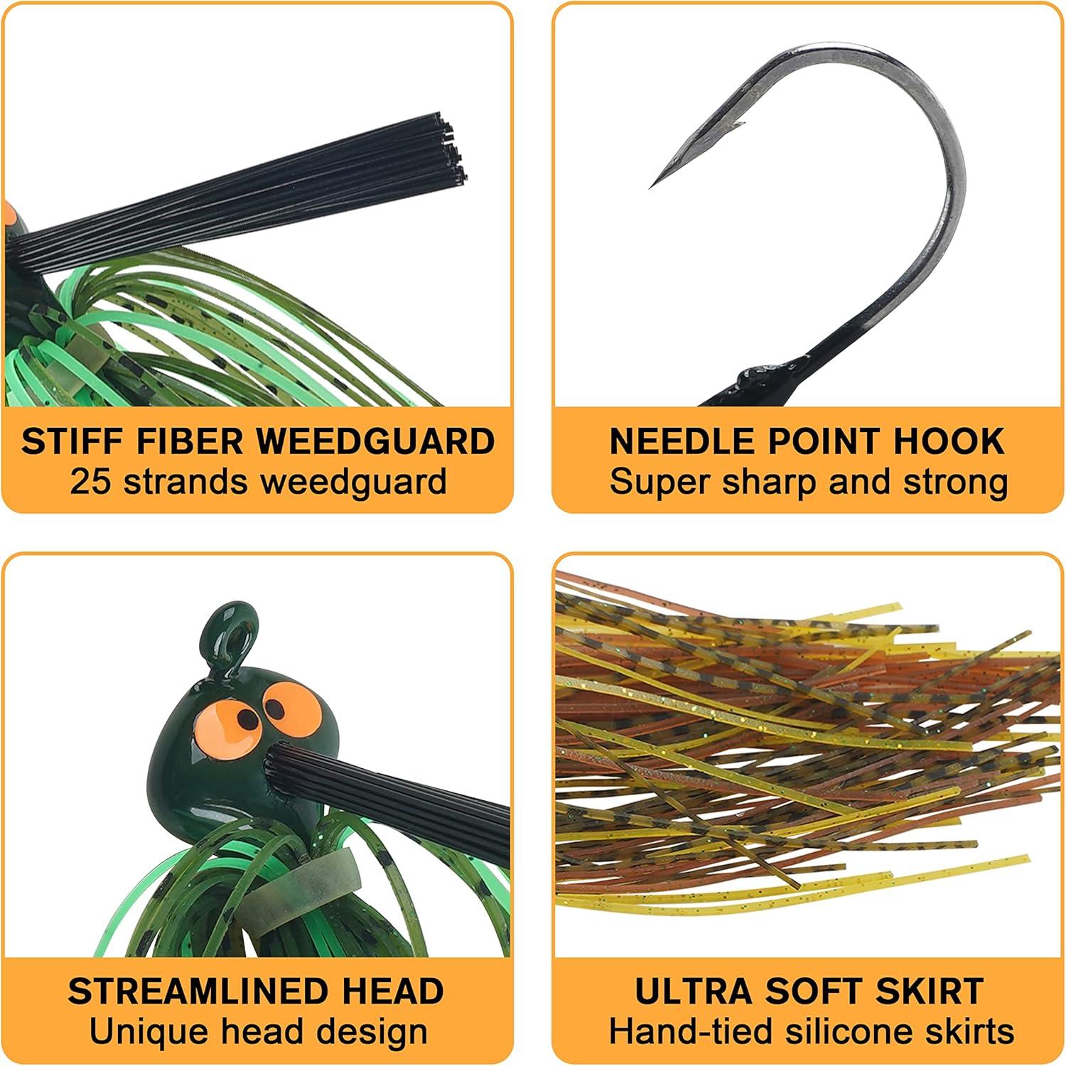 MULTI-COLOR SKIRTS: Hand-tied 50 strands silicone skirts, imitate natural forage and contains tiny pearl flakes for added attraction. The bass fishing jigs will allow you to become more efficient with your time on the water.