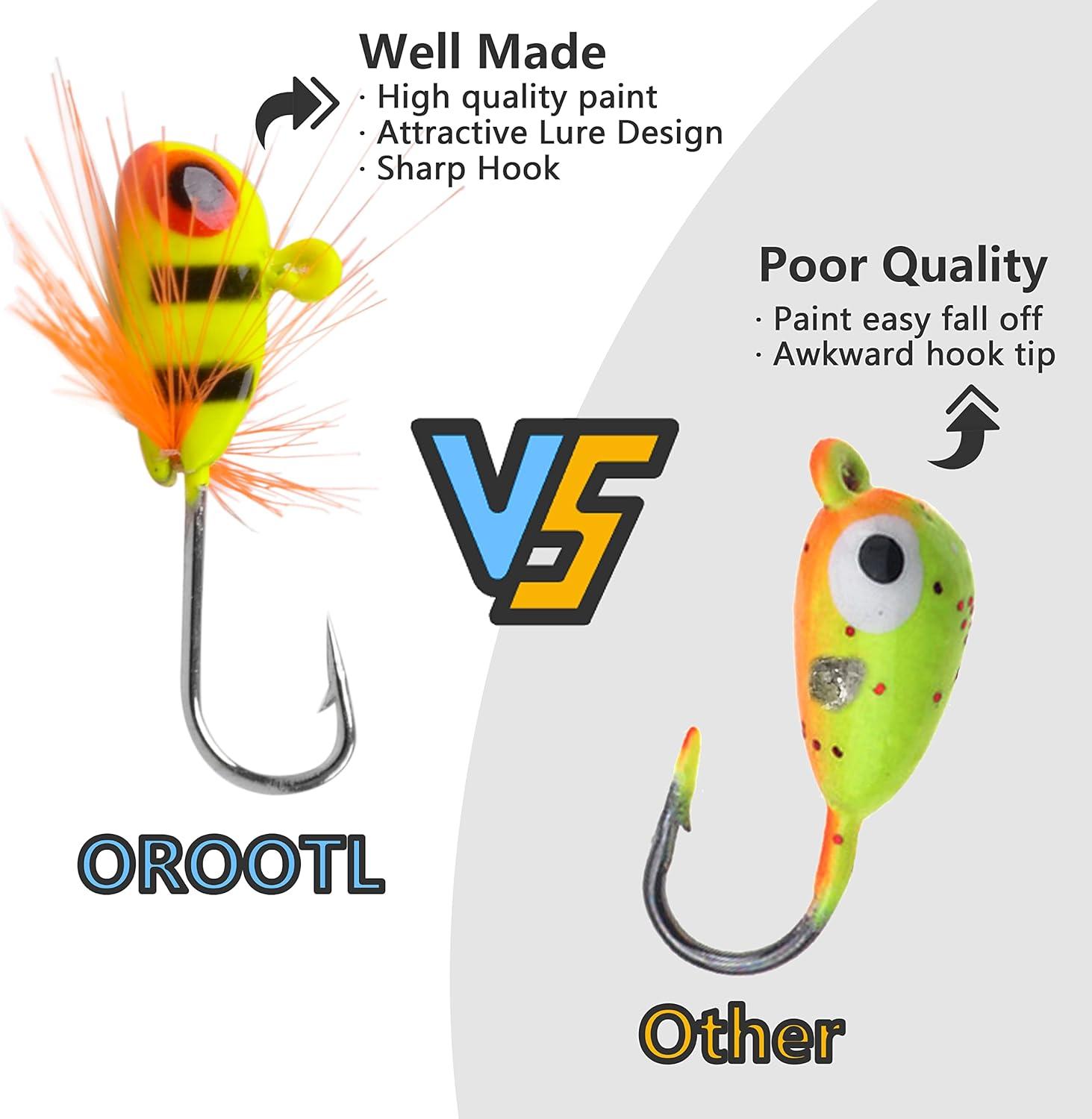 OROOTL Ice Fishing Jigs Set, 18pcs Ice Fishing Lures Ice Jig Head Hooks Kit for Panfish Crappie Walleye Perch Trout and Bluegill