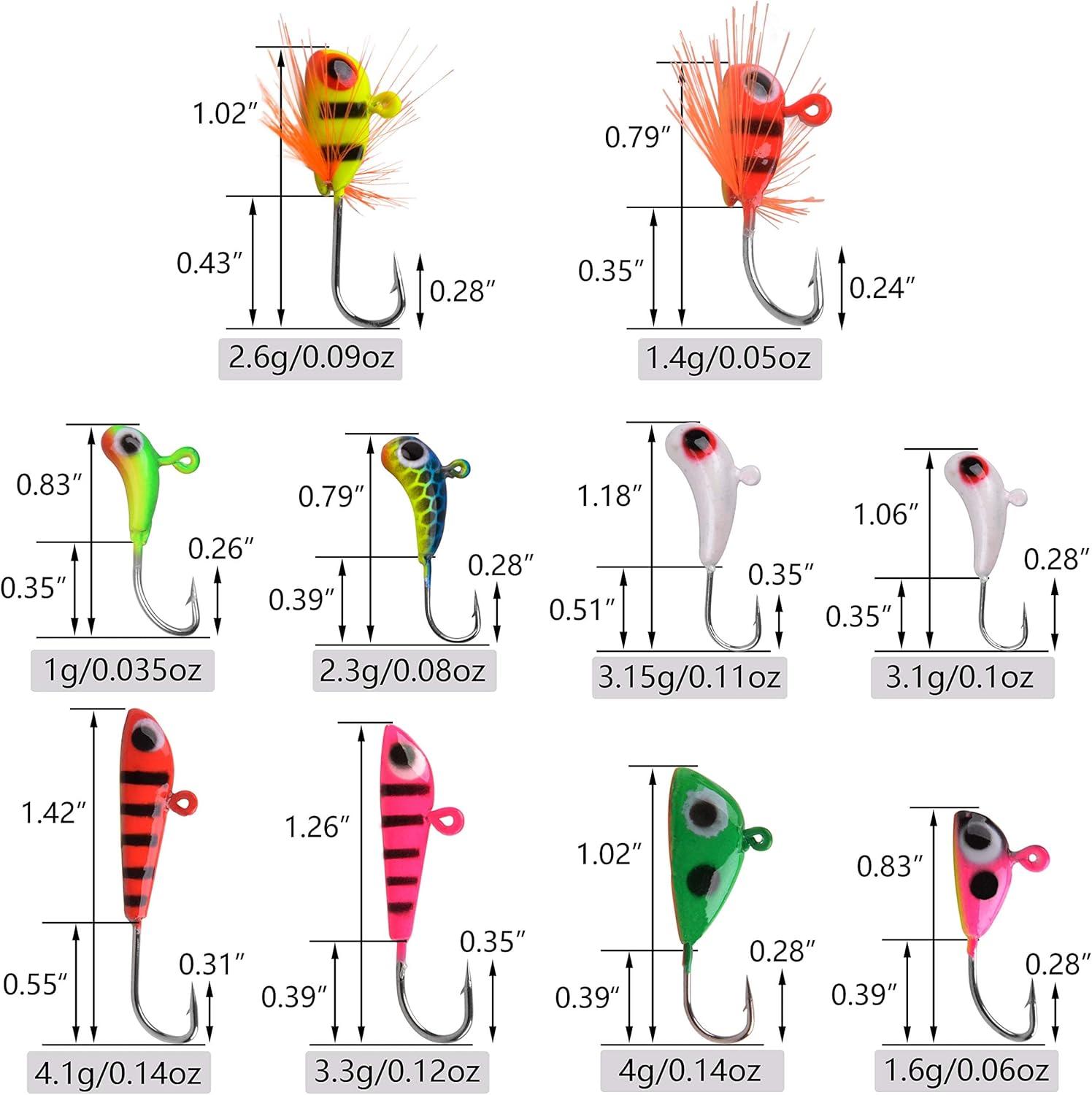 ๐ŸŸ ENJOY WINTER FISHING TIME: Ice fishing is a great activity to have fun and explore the nature. Take the wonderful Ice Fishing Jigs Kit for your trip! ATTENTION: Learn the safety fishing guidelines before ice fishing. Safety First!