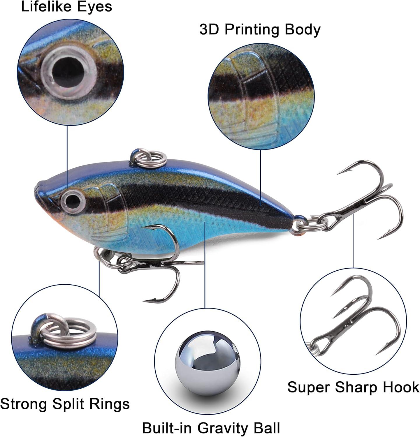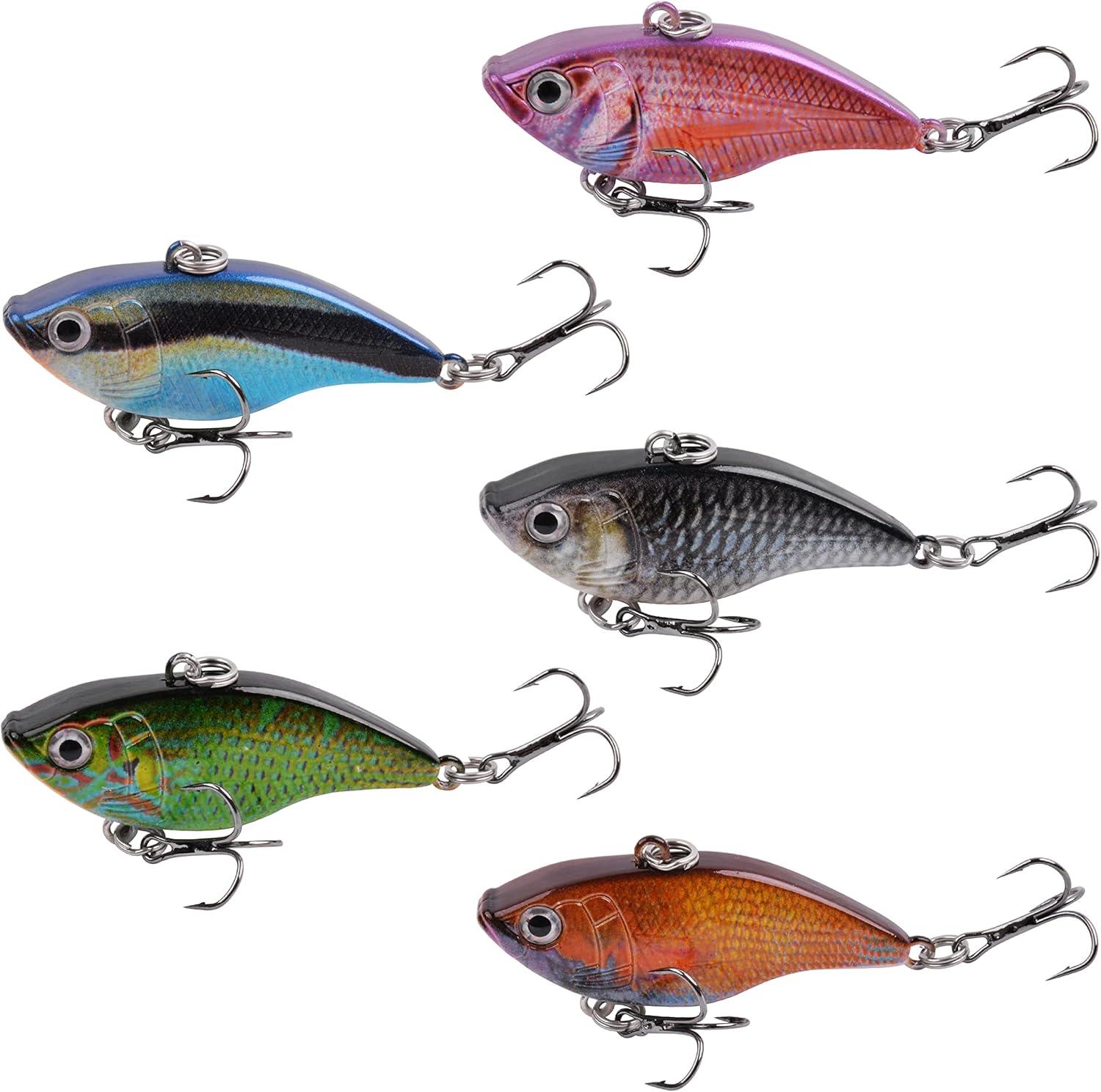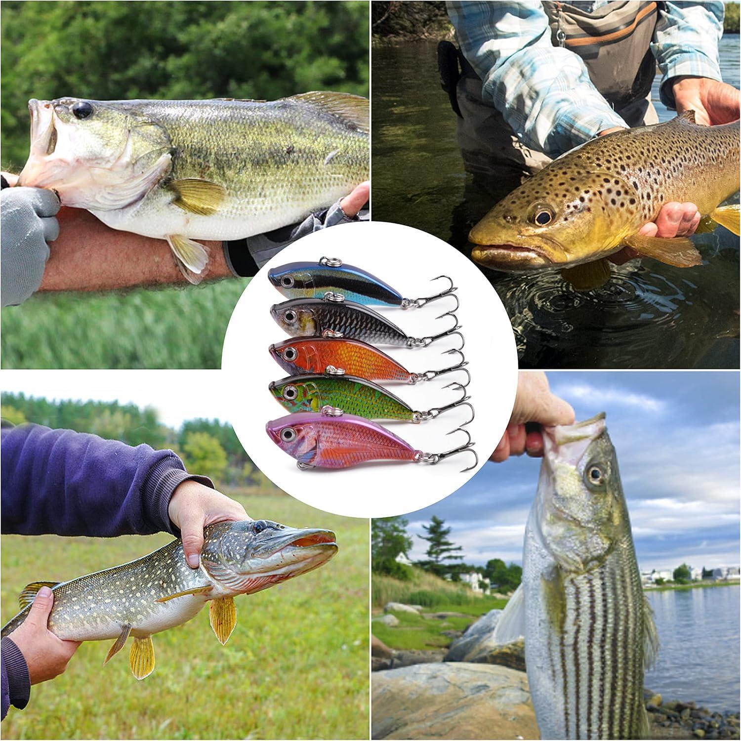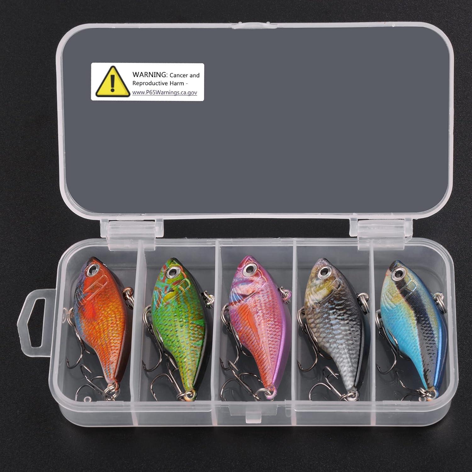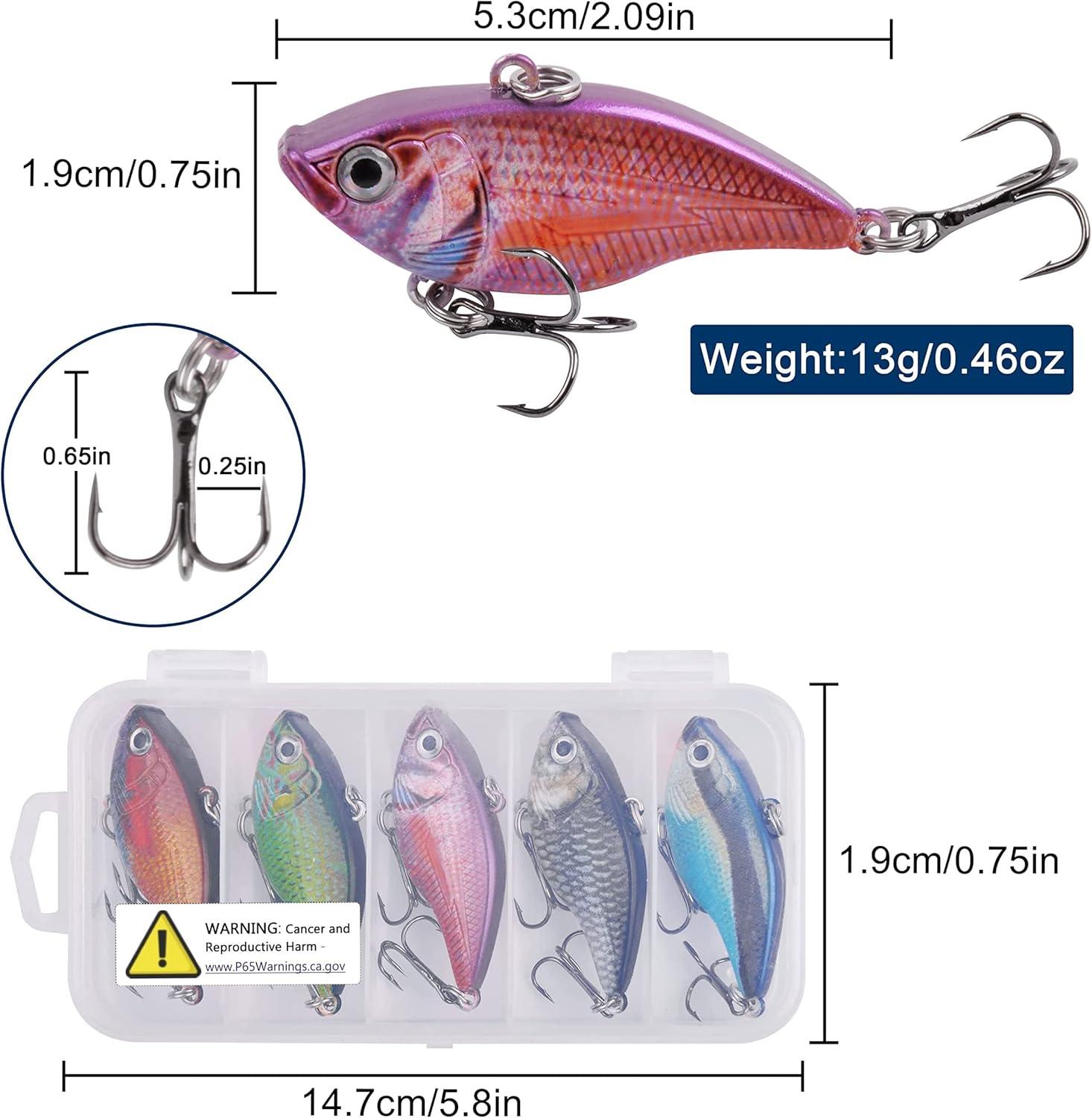 OROOTL Lipless Crankbait for Bass Fishing Artificial Hard Fishing Lures Kit Minnow Pencil VIB Popper Lure Swimbait Set for Crappie Bass Trout Walleye Redfish Pike Freshwater Saltwater(Crankbaits_5Pcs/Box)