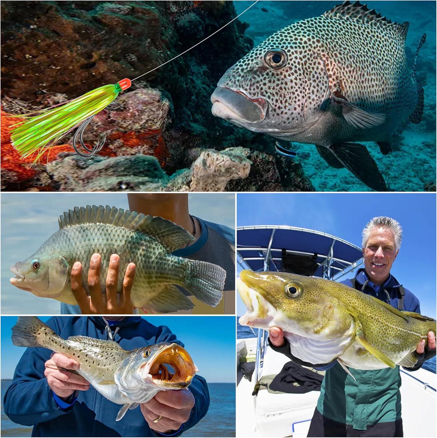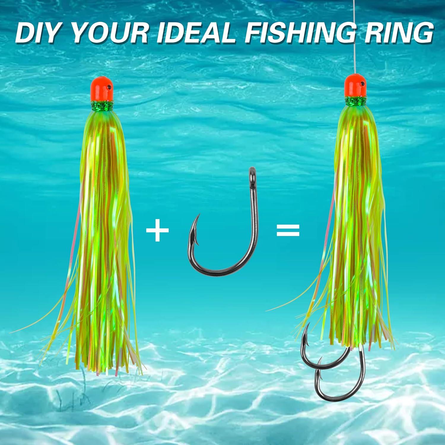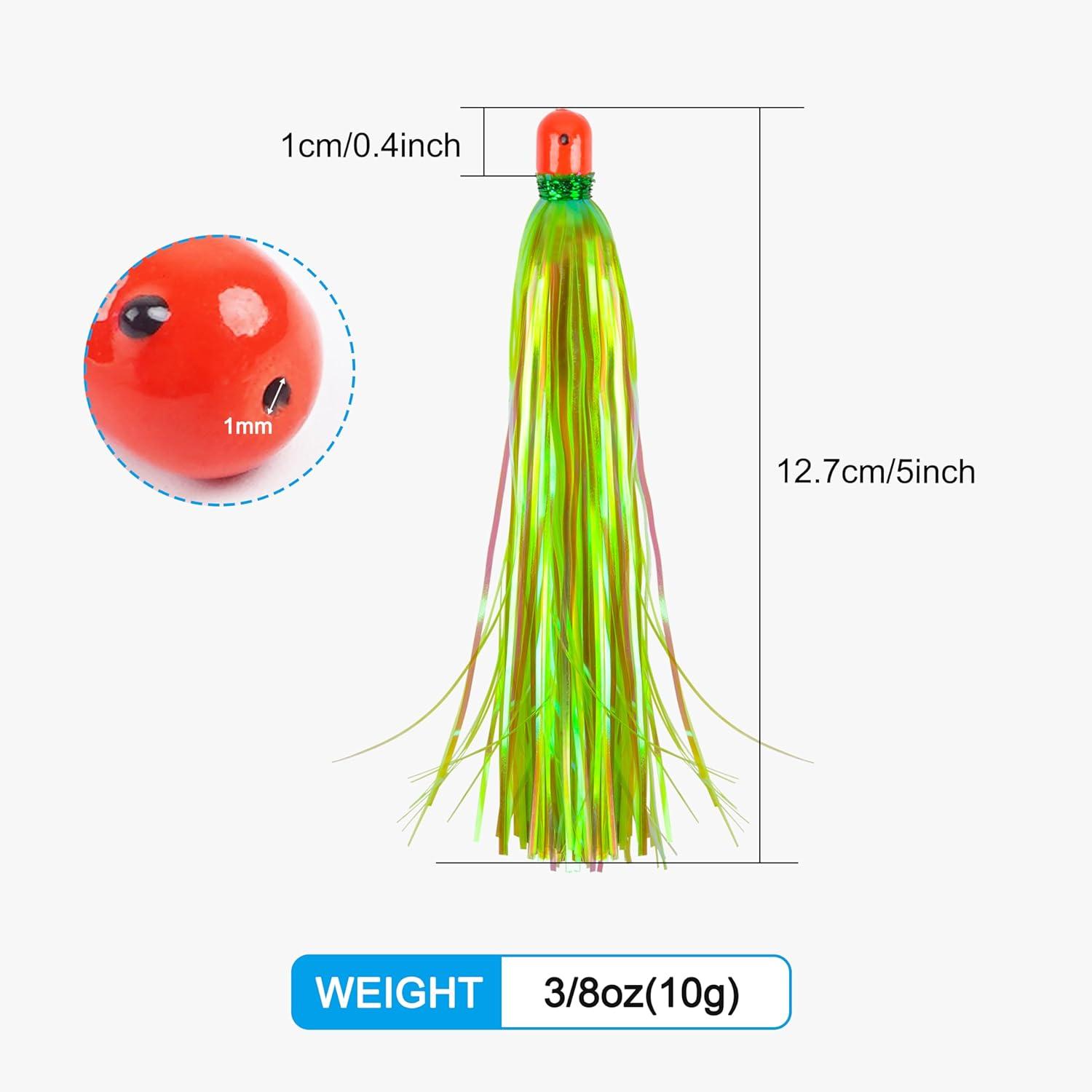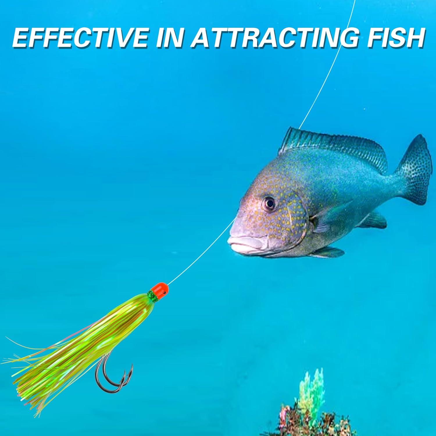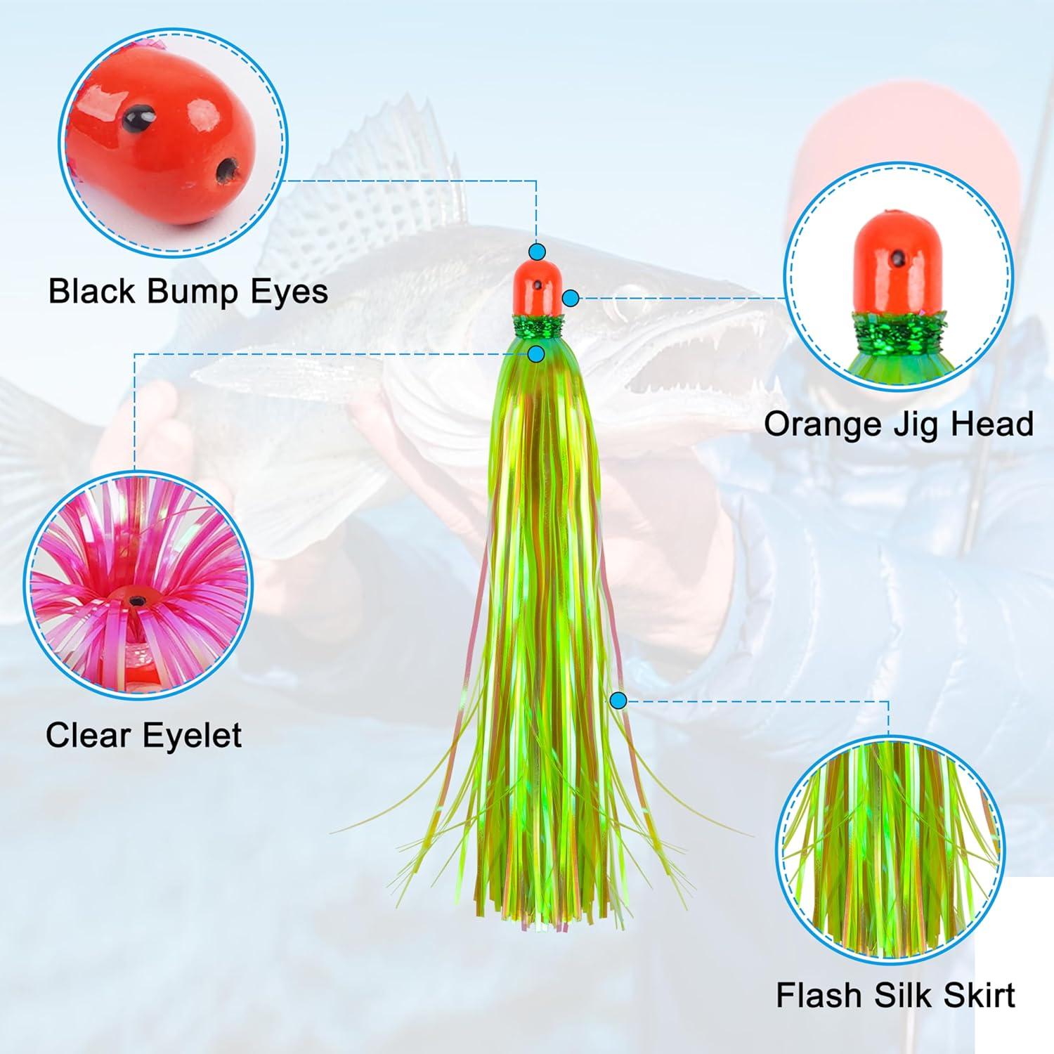 【High Quality】Fishing teaser skirt features a heavy jig head for fast drop-off, upgrade electric crystal hair and special pearl flash material have excellent moisture and water resistance. Strong and durable for saltwater fishing.