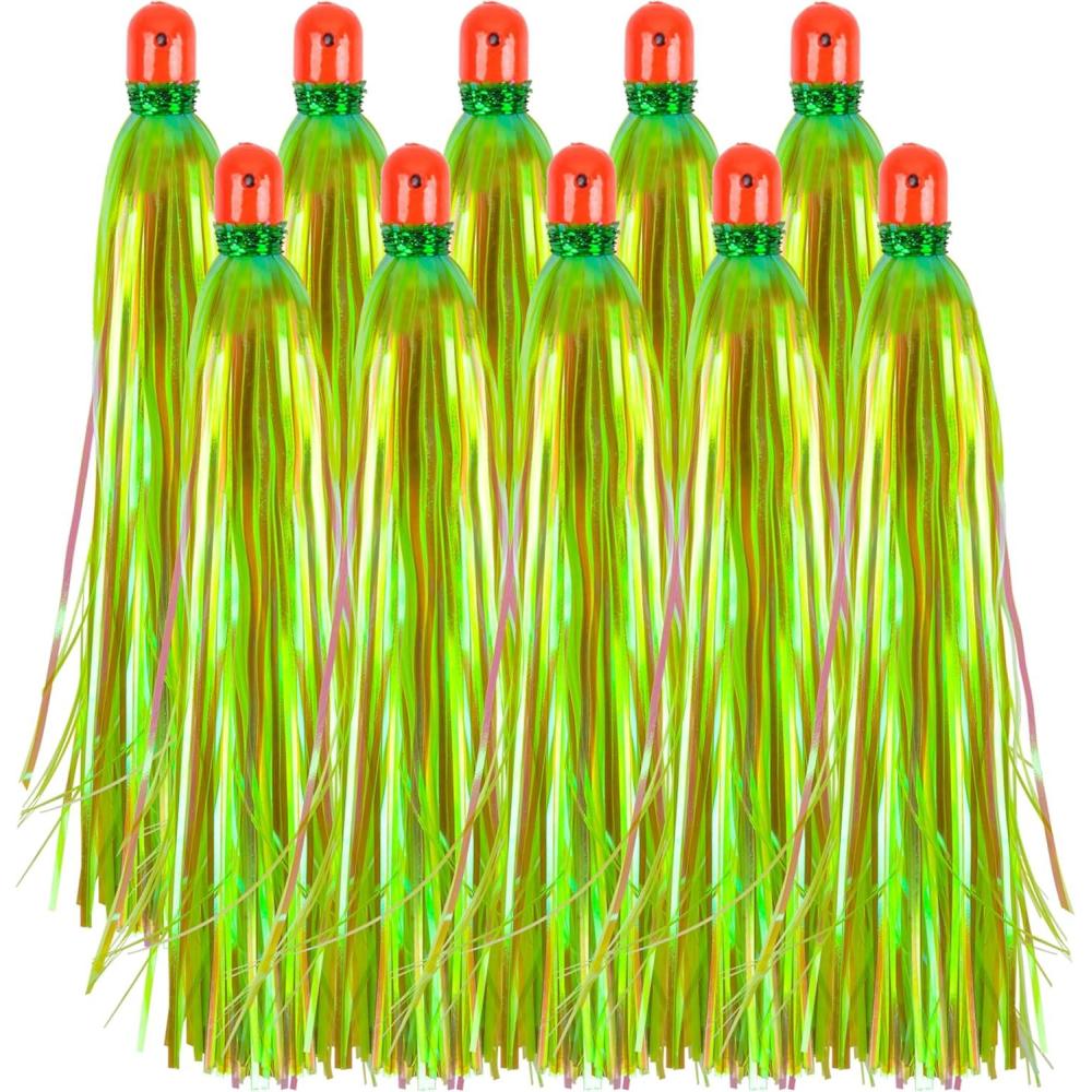 OROOTL Mylar Flash Teaser Tail Bucktail Teasers Weighted Jig Head Fishing Lures Mylar Fishing Skirt Hair Bait Jigs 3/8oz Bullet Sinkers Head with Bucktail Teaser 10pcs/Pack(Green-10pcs)